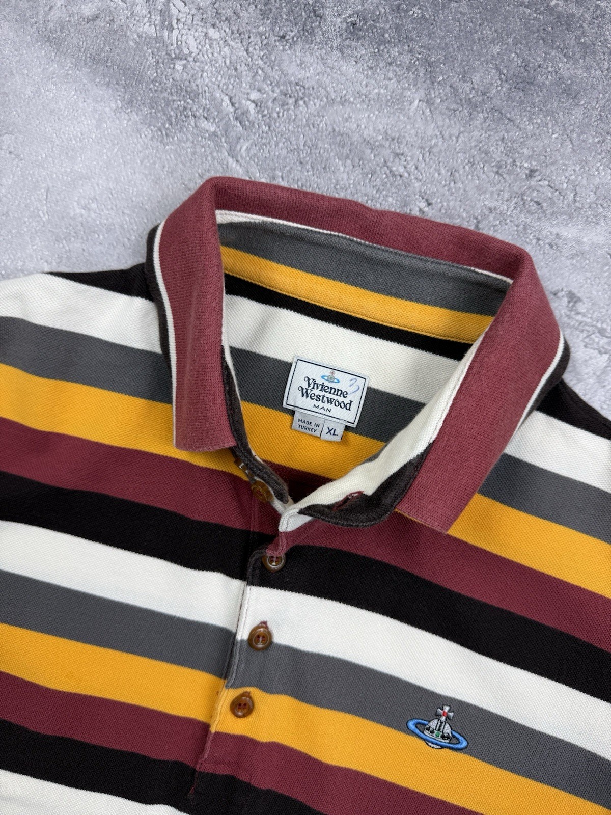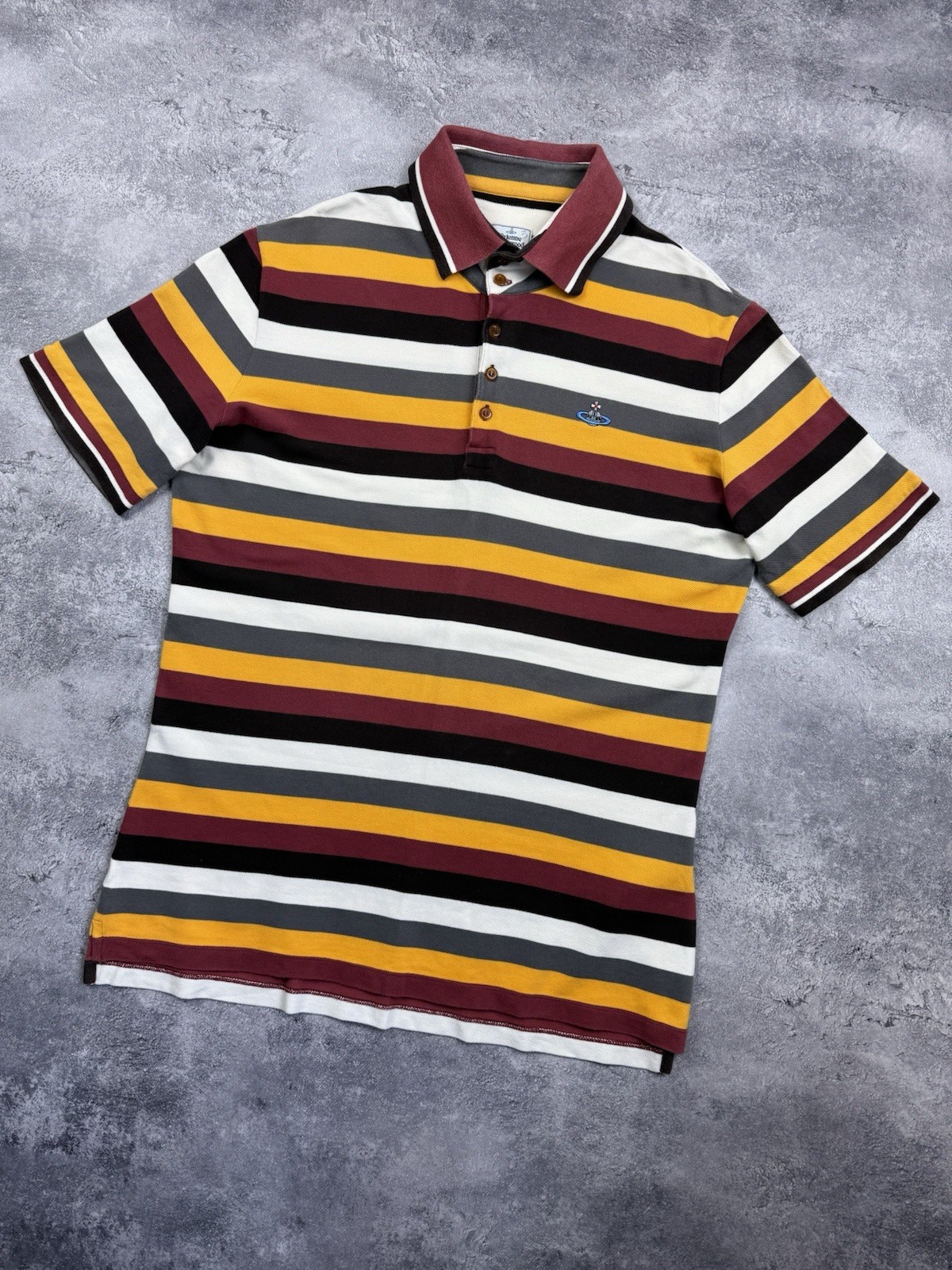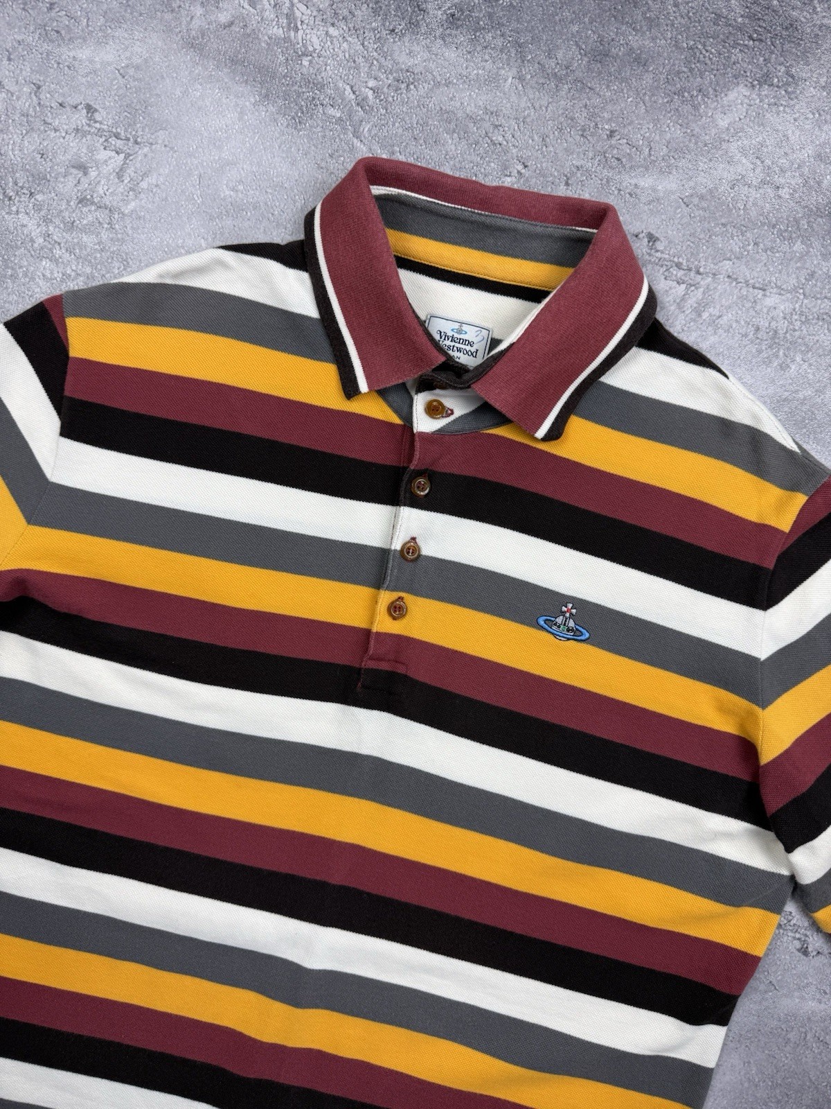 Vivienne Westwood Luxury Polo Striped Shirt Mens Embroidered Orb Logo Size XL
