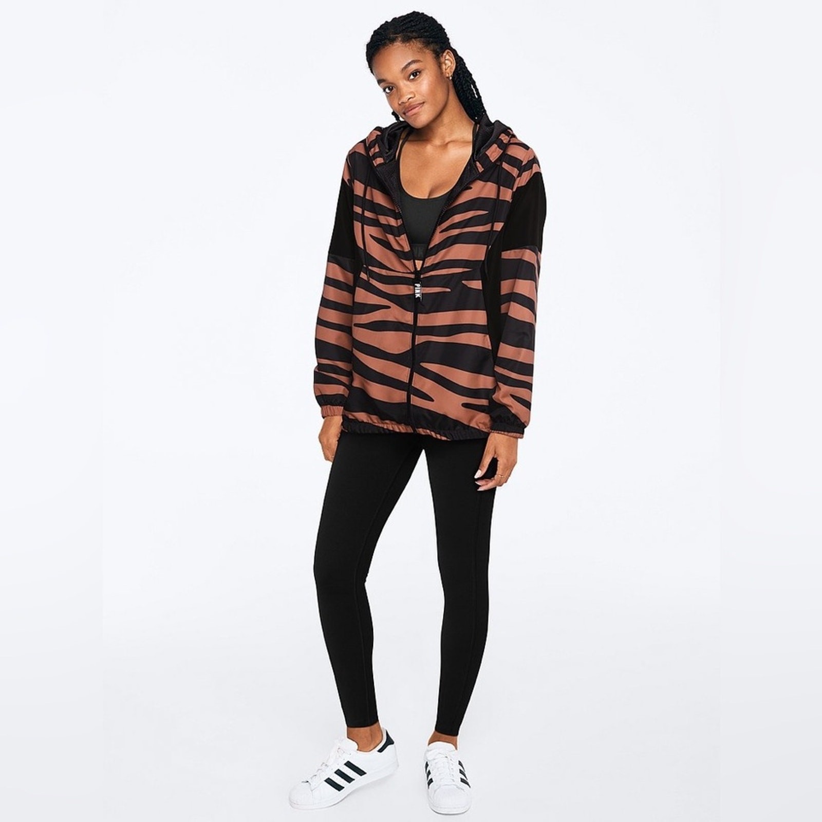 как выглядит Victoria s Secret PINK Colorblock Full Zip Anorak Windbreaker Jacket Hood M/L фото