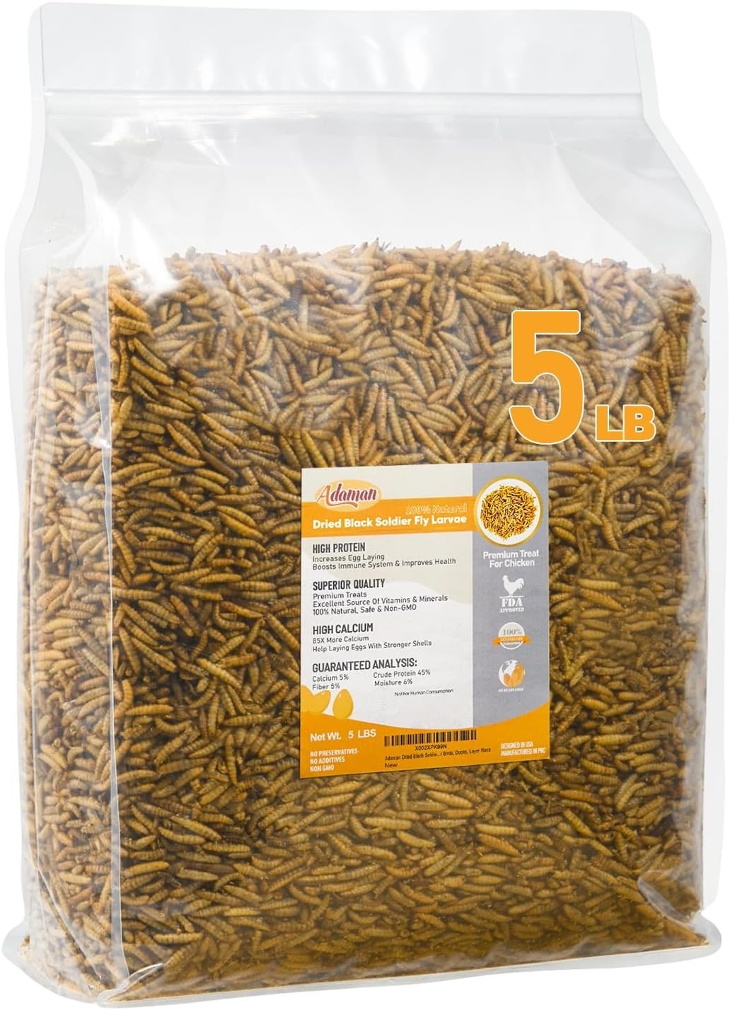 5 lbs Dried Black Soldier Fly Larvae for Poultry and Reptiles High Protein Ca...