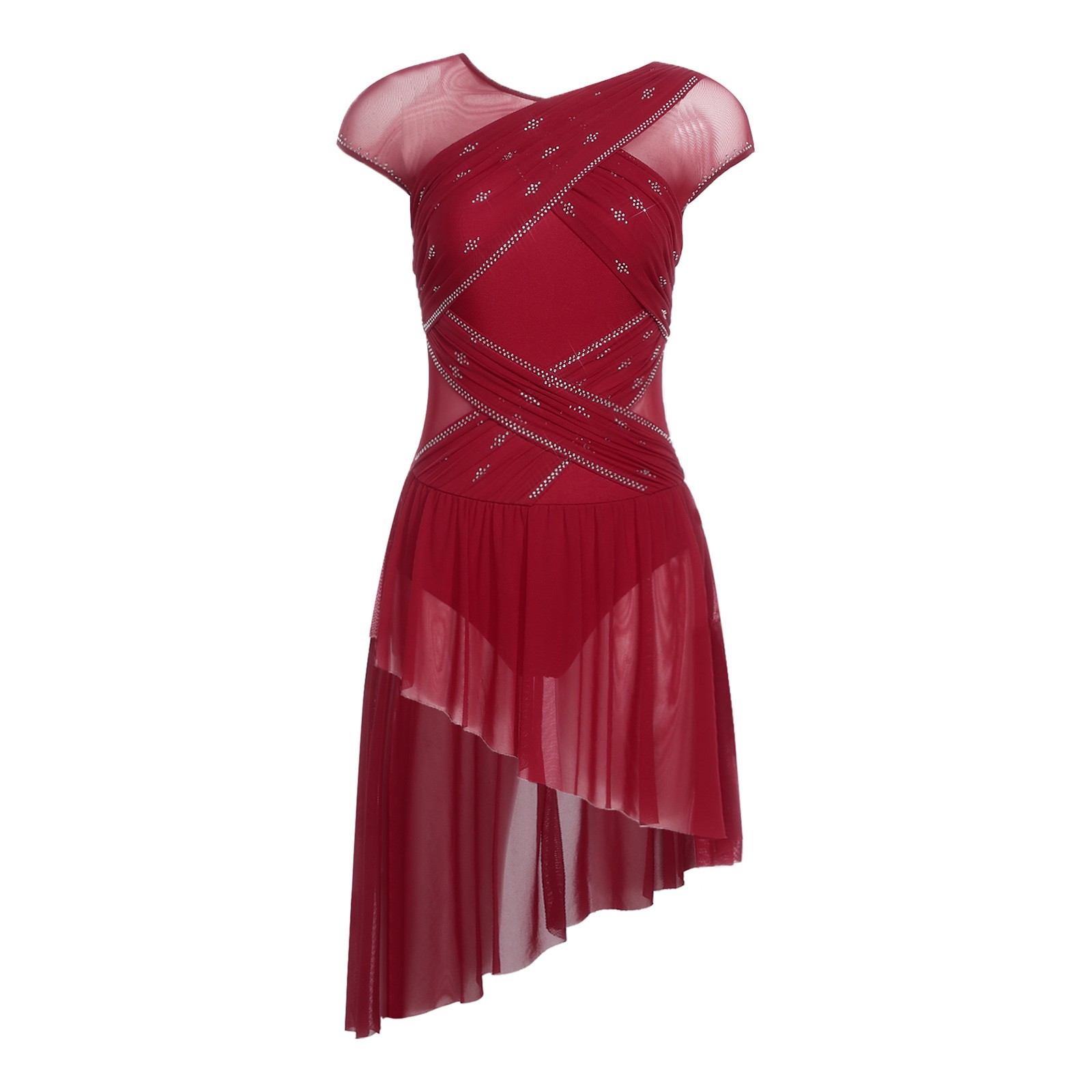 как выглядит Womens Figure Skating Dress Shiny Rhinestones Lyrical Modern Dance Costumes фото