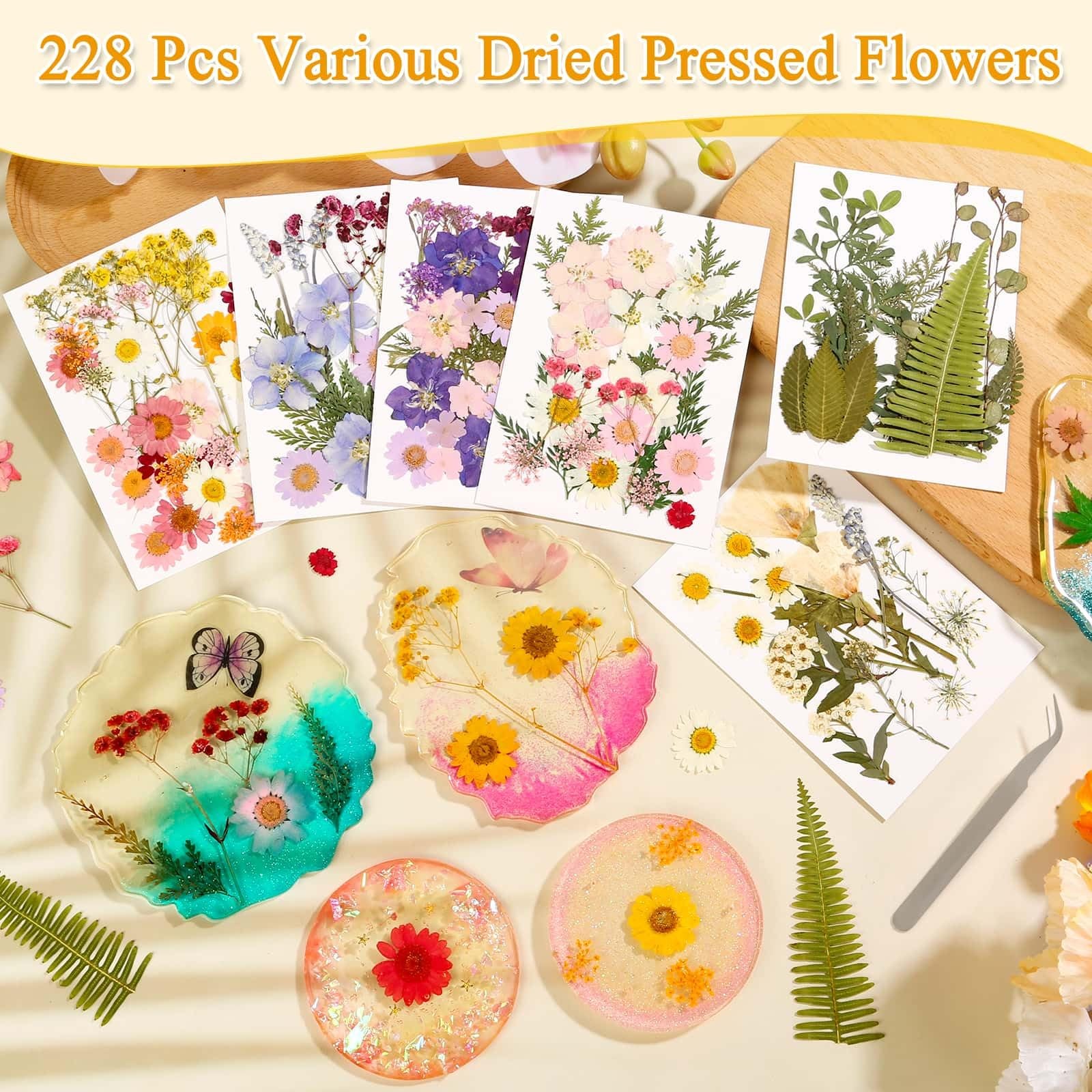 124 Pcs Dried Pressed Flowers for Resin Crafts, Real Pressed Wildflowers Natu...