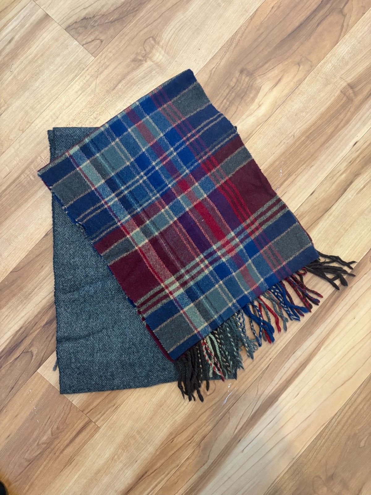 Pack of 2- Polo Ralph Lauren Wool Blend Scarf Plaid Charcoal gray Maroon Check
