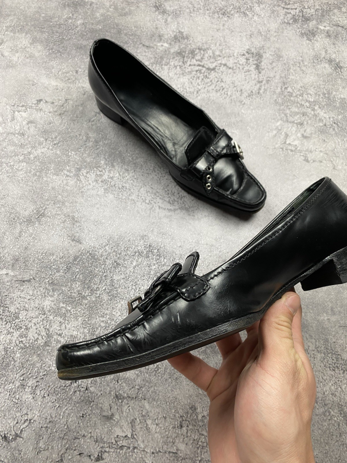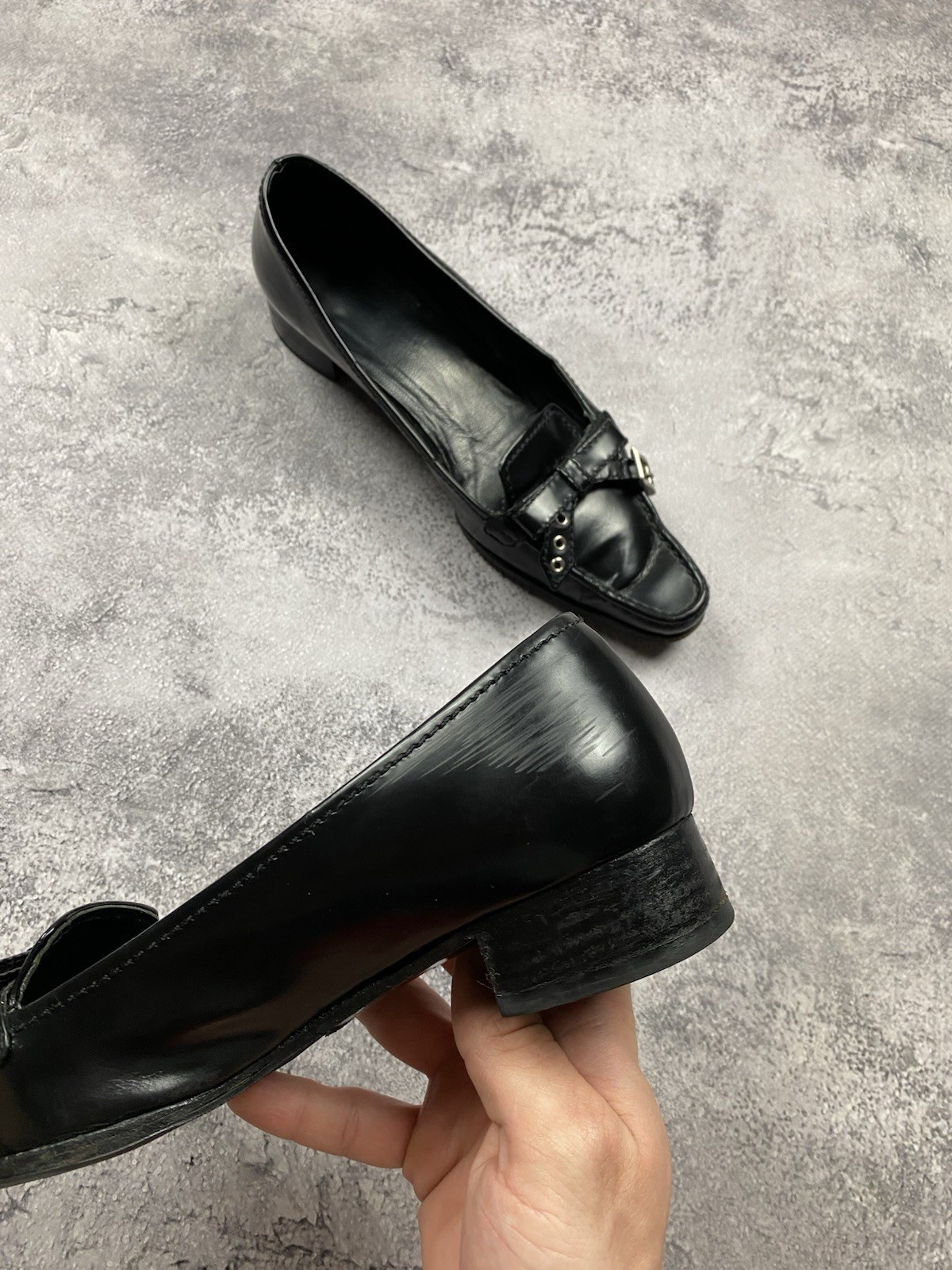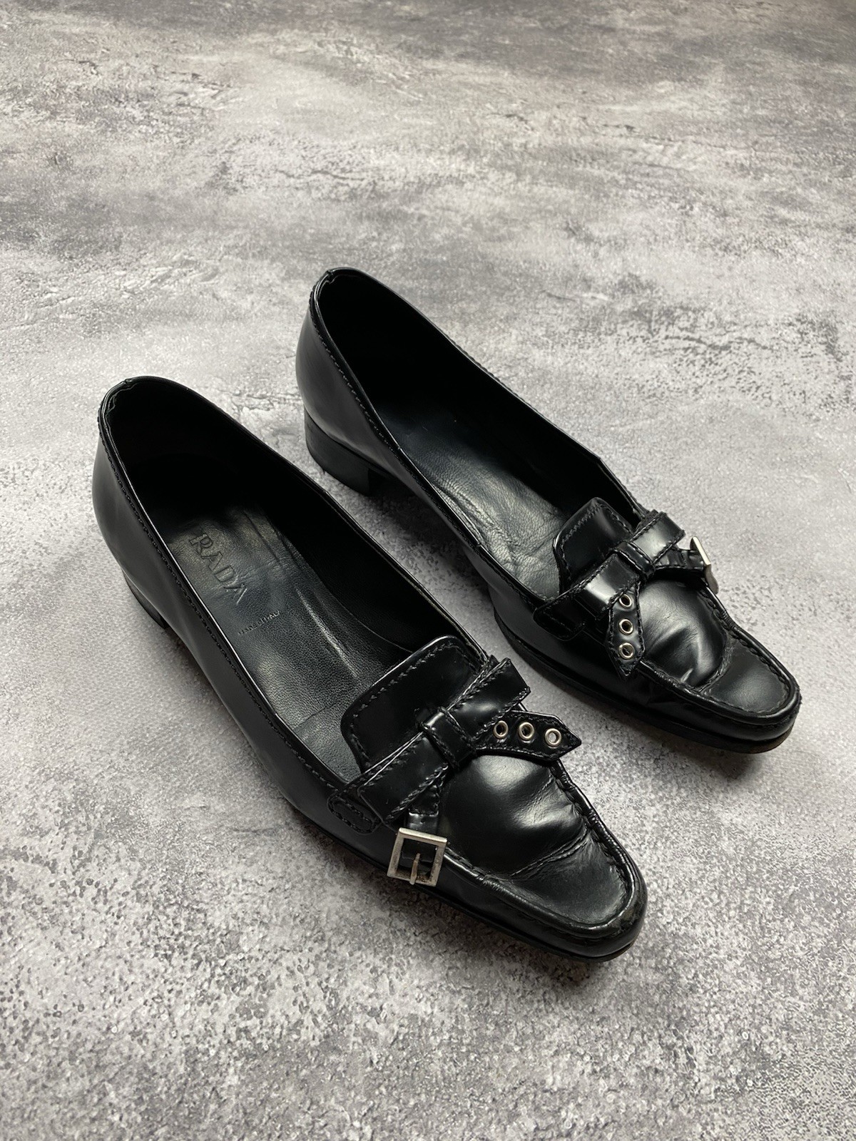 как выглядит PRADA Black Leather Loafers Flats Womens 25 cm Luxury Milano Shoes Made Italy фото