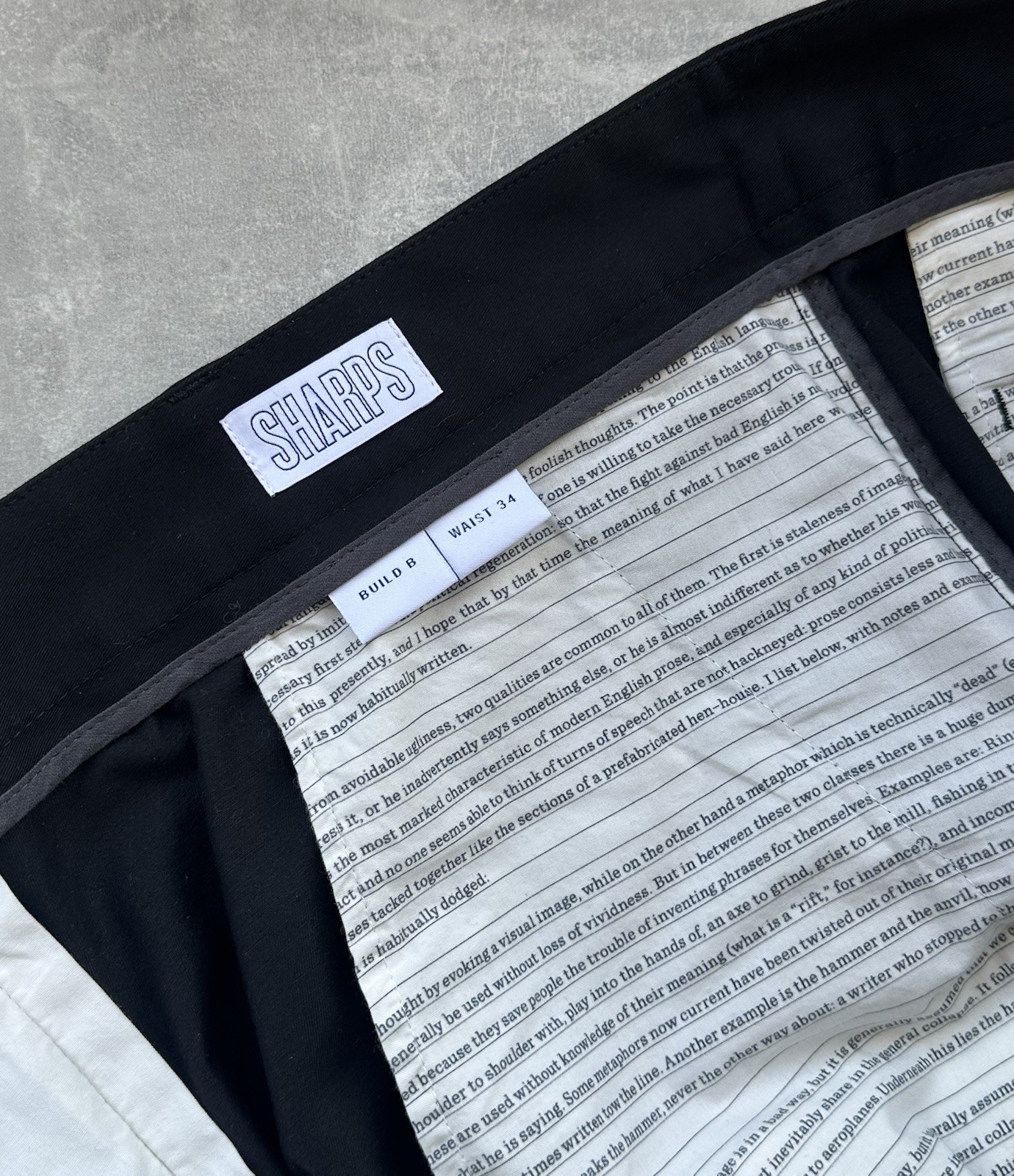 Spoke Mens Chino Trousers Size 34 Black Sharps Straight leg