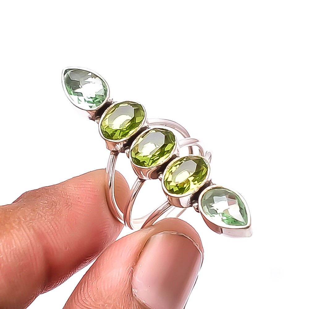 как выглядит Peridot Green Amethyst Five Stone Designer 925 Sterling Silver Ring S.5.5 R37 фото