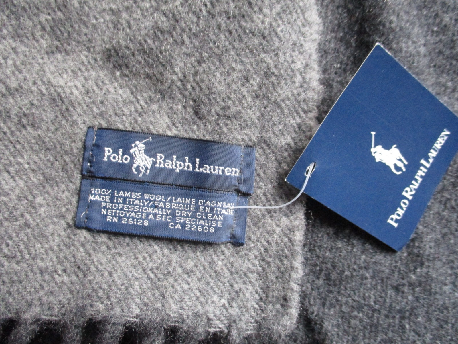 как выглядит POLO RALPH LAUREN Scarf Gray Large PONY 100 Lambswool Lambs Wool Made in Italy фото