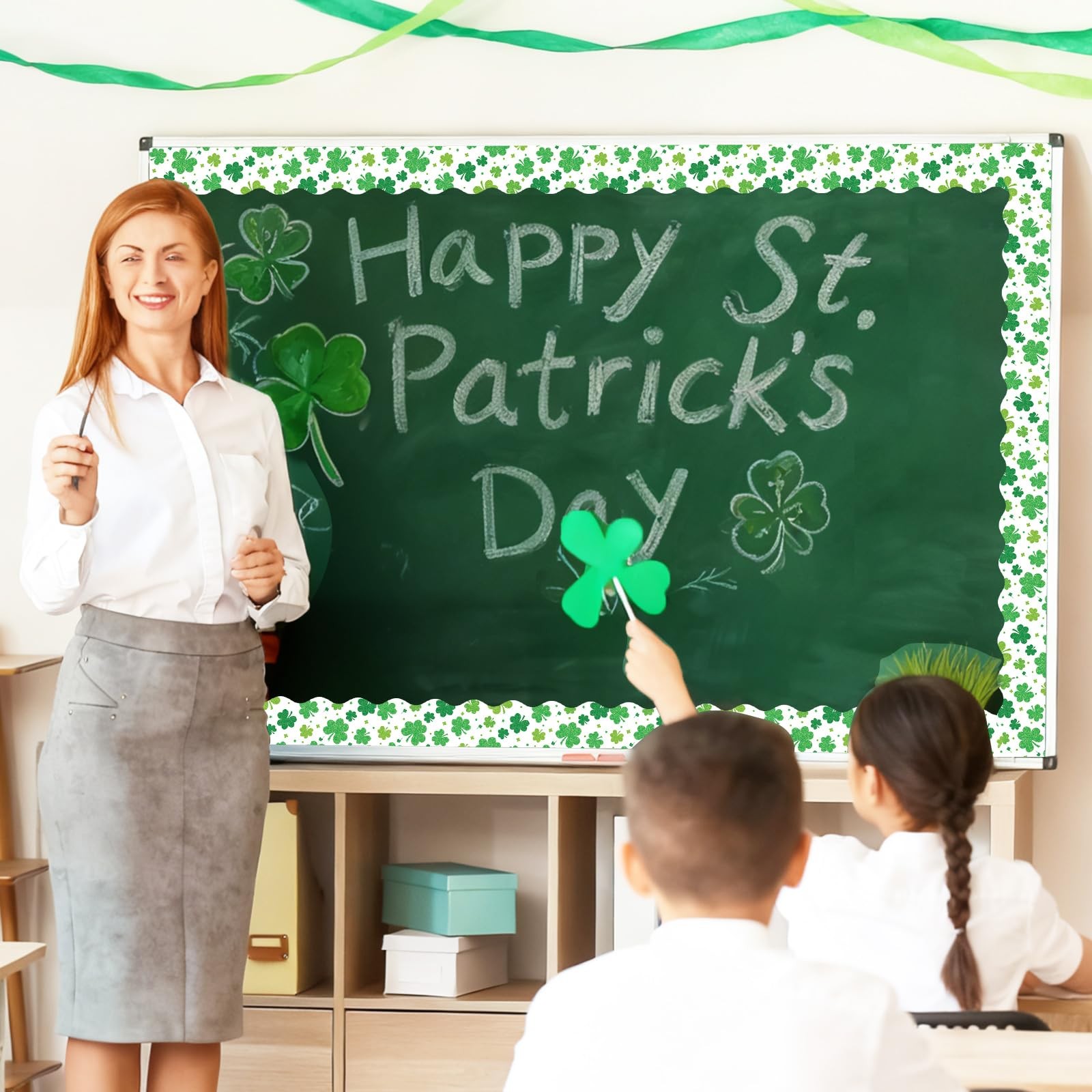 32.8ft St. Patrick's Day Bulletin Board Border Green White Lucky Shamrock Clover