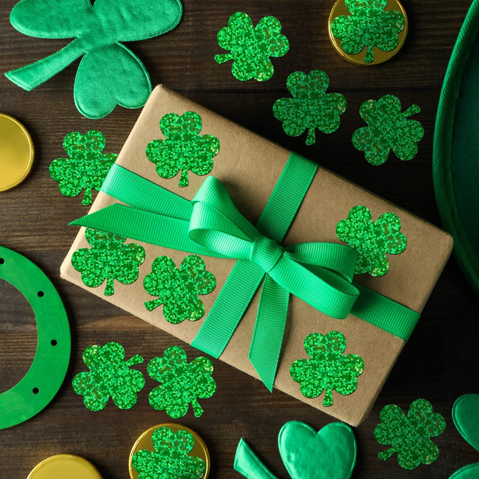 как выглядит 800Pcs Shamrock Shape Glitter Stickers St. Patricks Day Holographic Stickers Lu фото