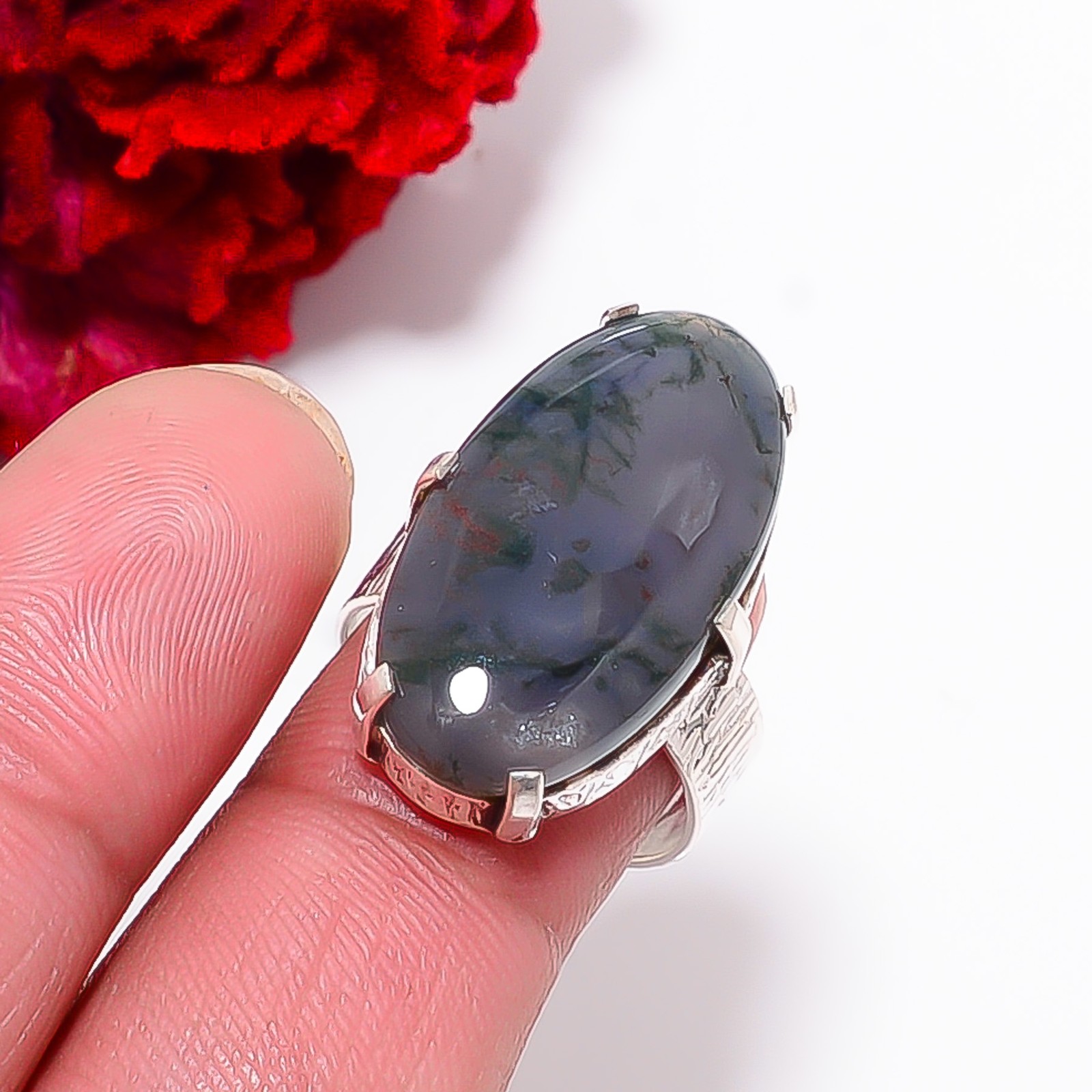как выглядит Moss Agate - India Gemstone 925 Sterling Silver Ring S.8, Christmas Gift R97731 фото