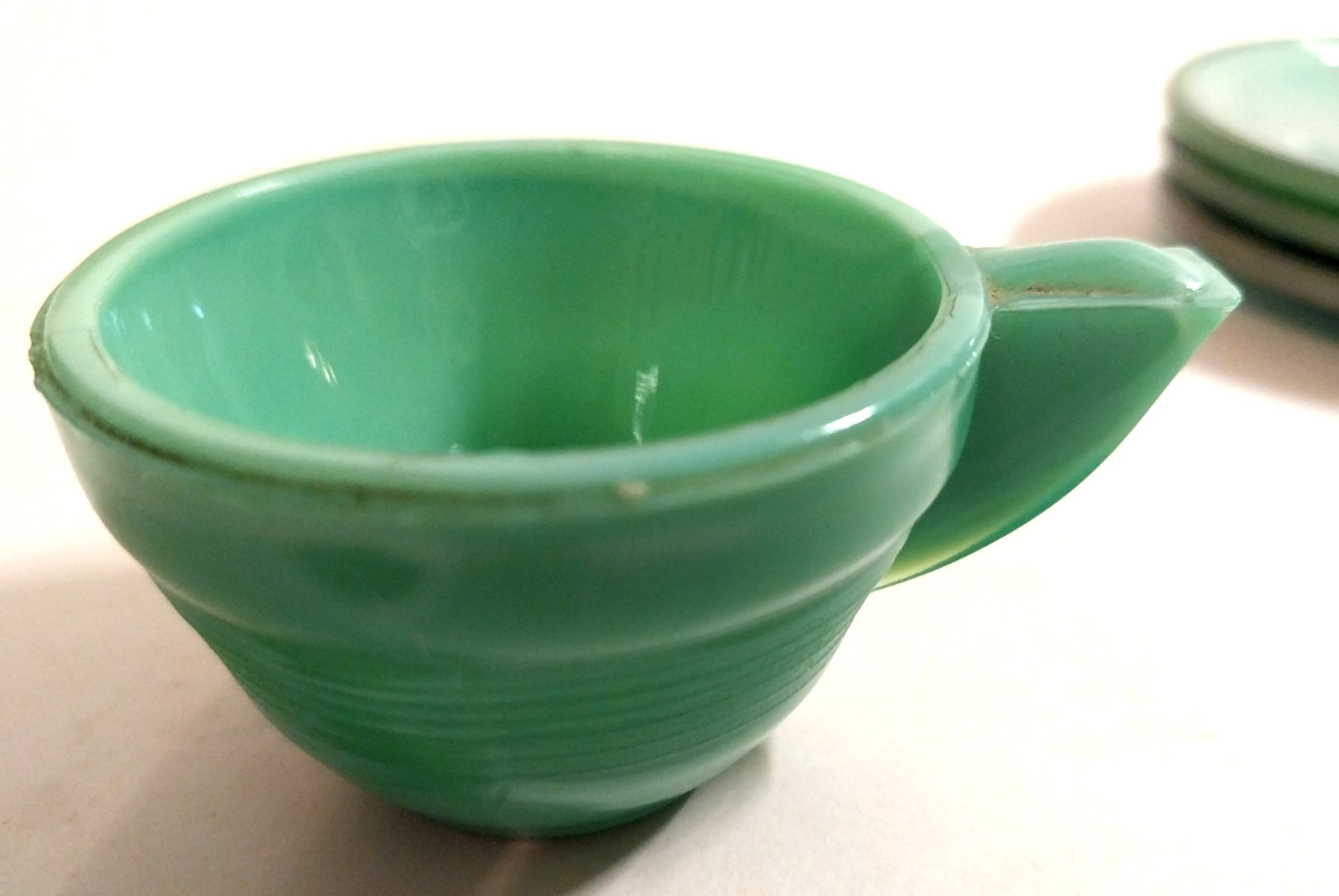 как выглядит Childs Glass Dishes Set Green Agate Jadite 9 Pc. Lot Plates Sugar Creamer 1960s фото
