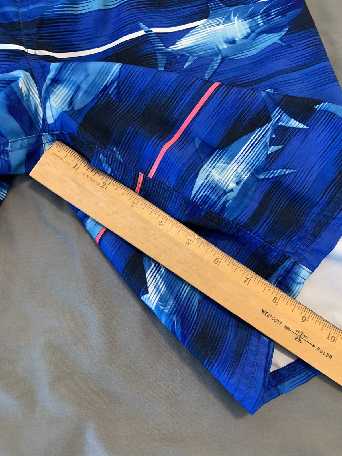 как выглядит Gerry Boys Blue Sharks Lined Swim Trunks Youth X-Large 18/20 Measure 28x8 фото
