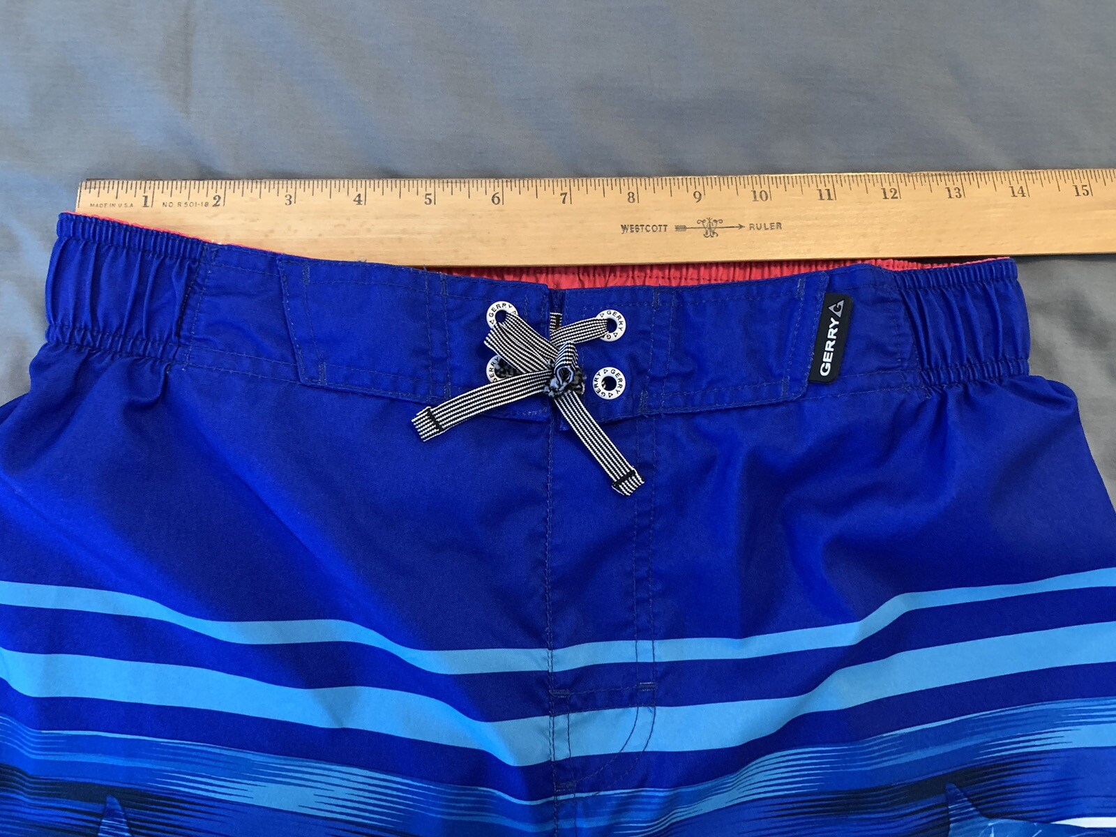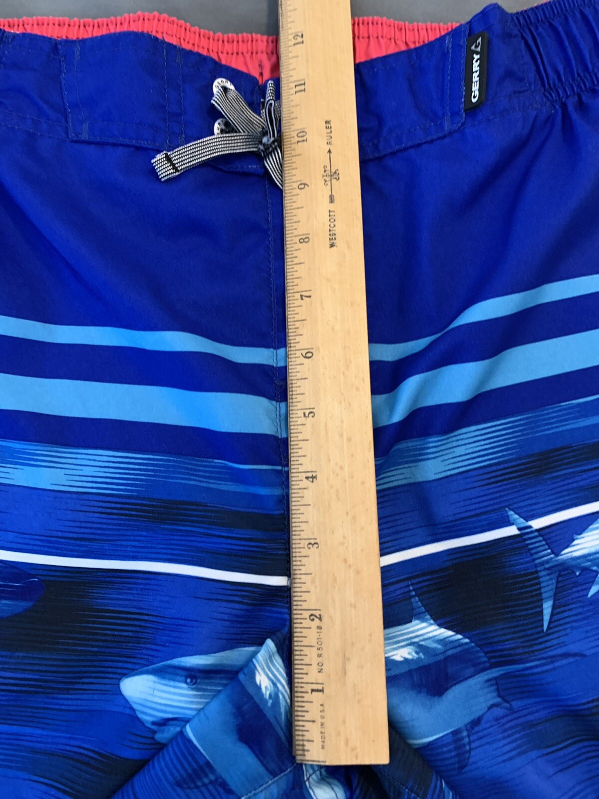 Gerry Boy's Blue Sharks Lined Swim Trunks Youth X-Large 18/20 Measure 28x8