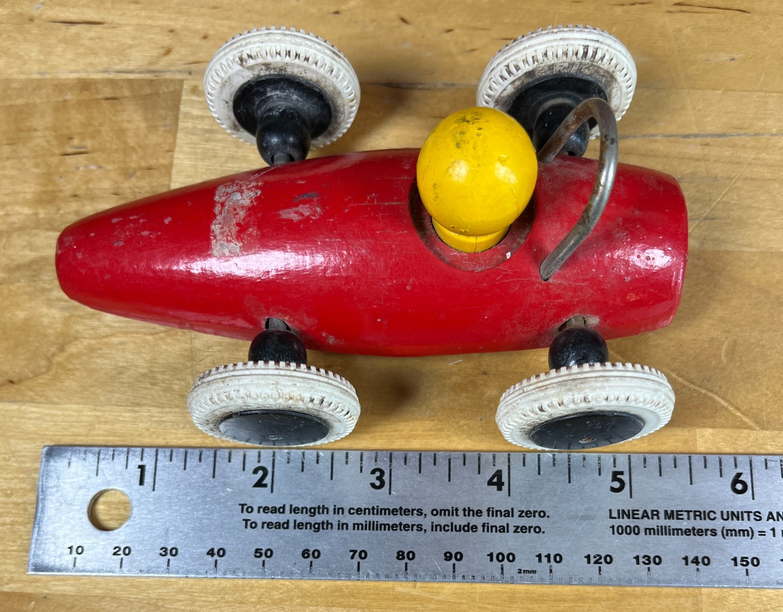 Vintage Brio Sweden Red Wood Race Car Toy White Rubber Tires 5.25