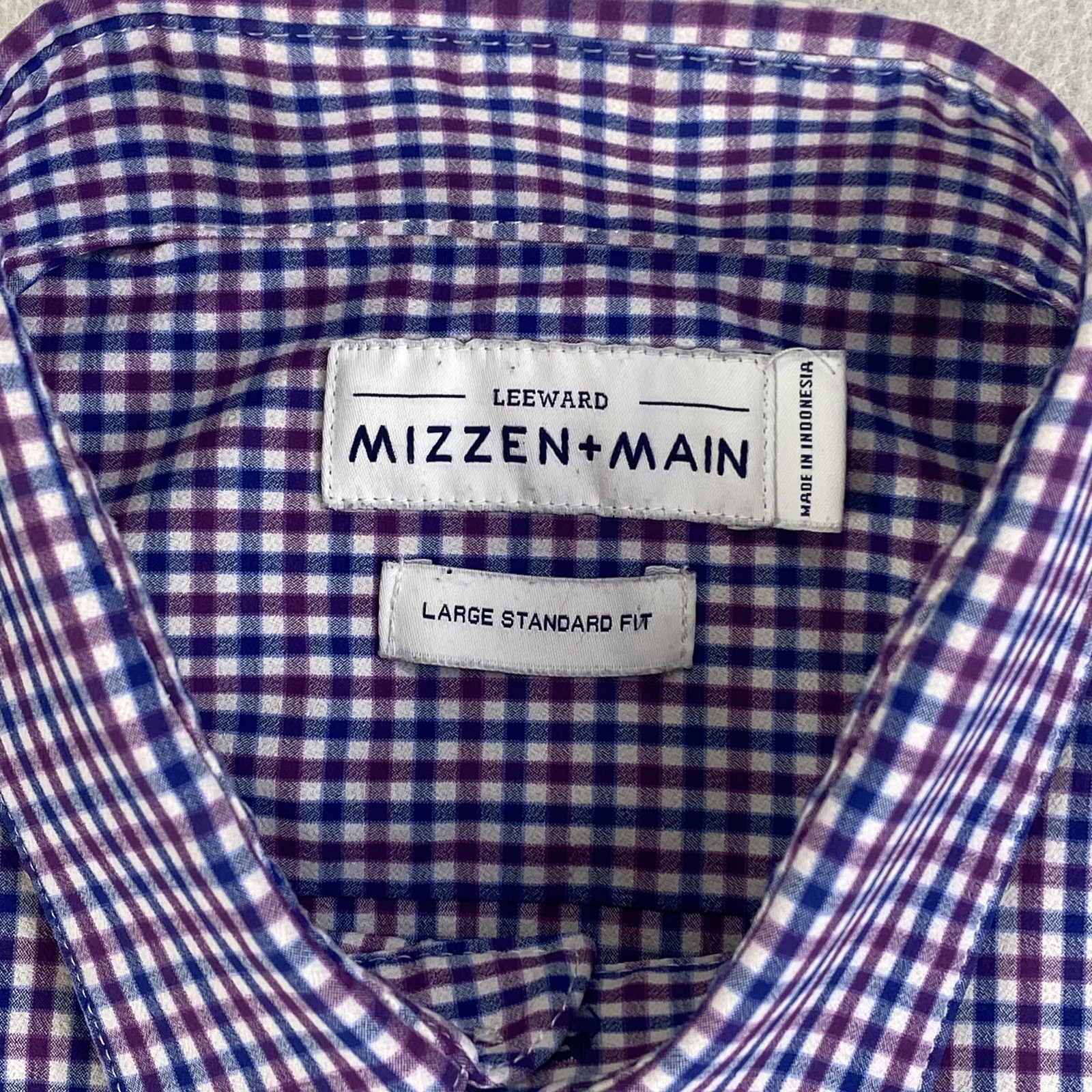 как выглядит Mizzen Main Leeward Shirt Mens Large Purple Blue Gingham Standard Button Down фото
