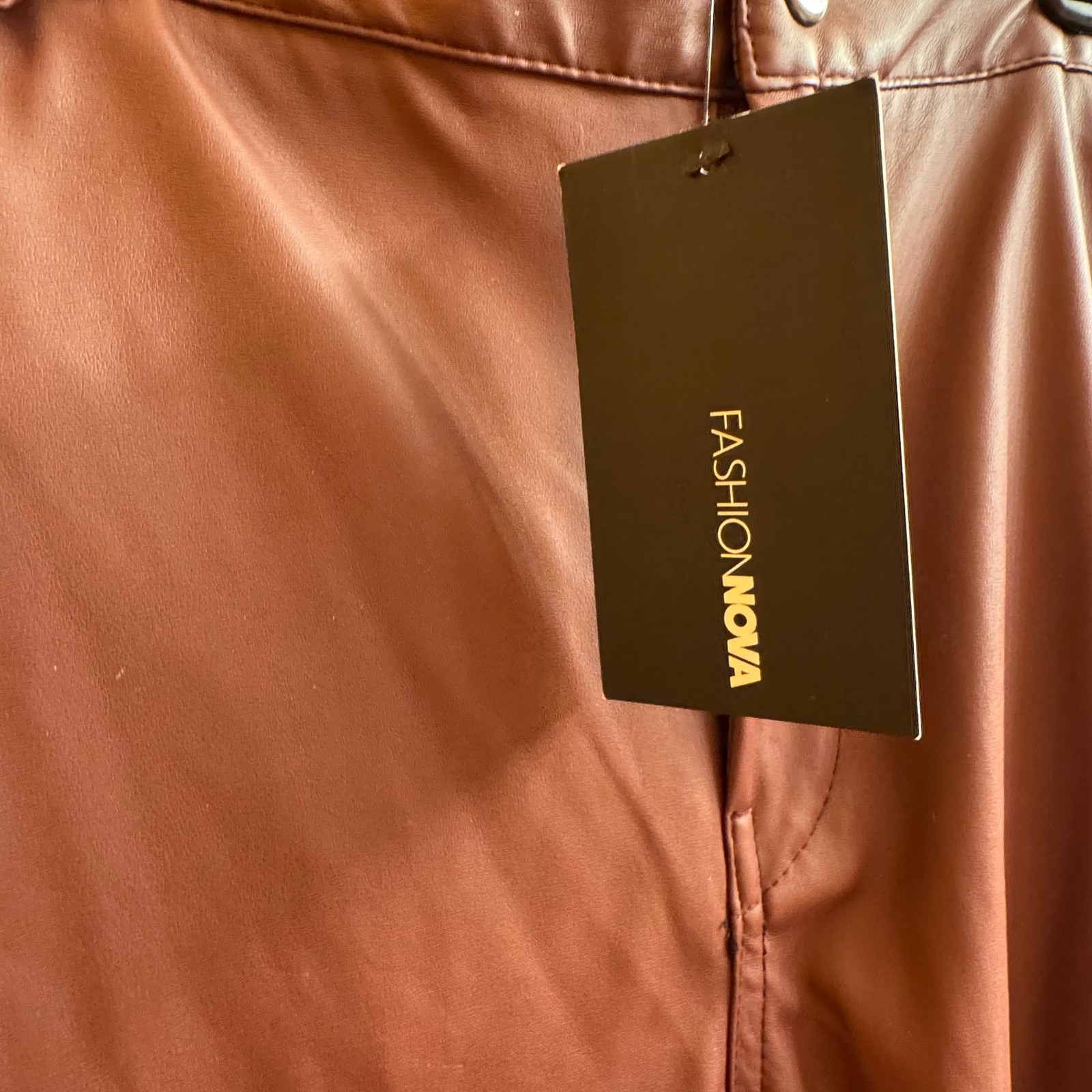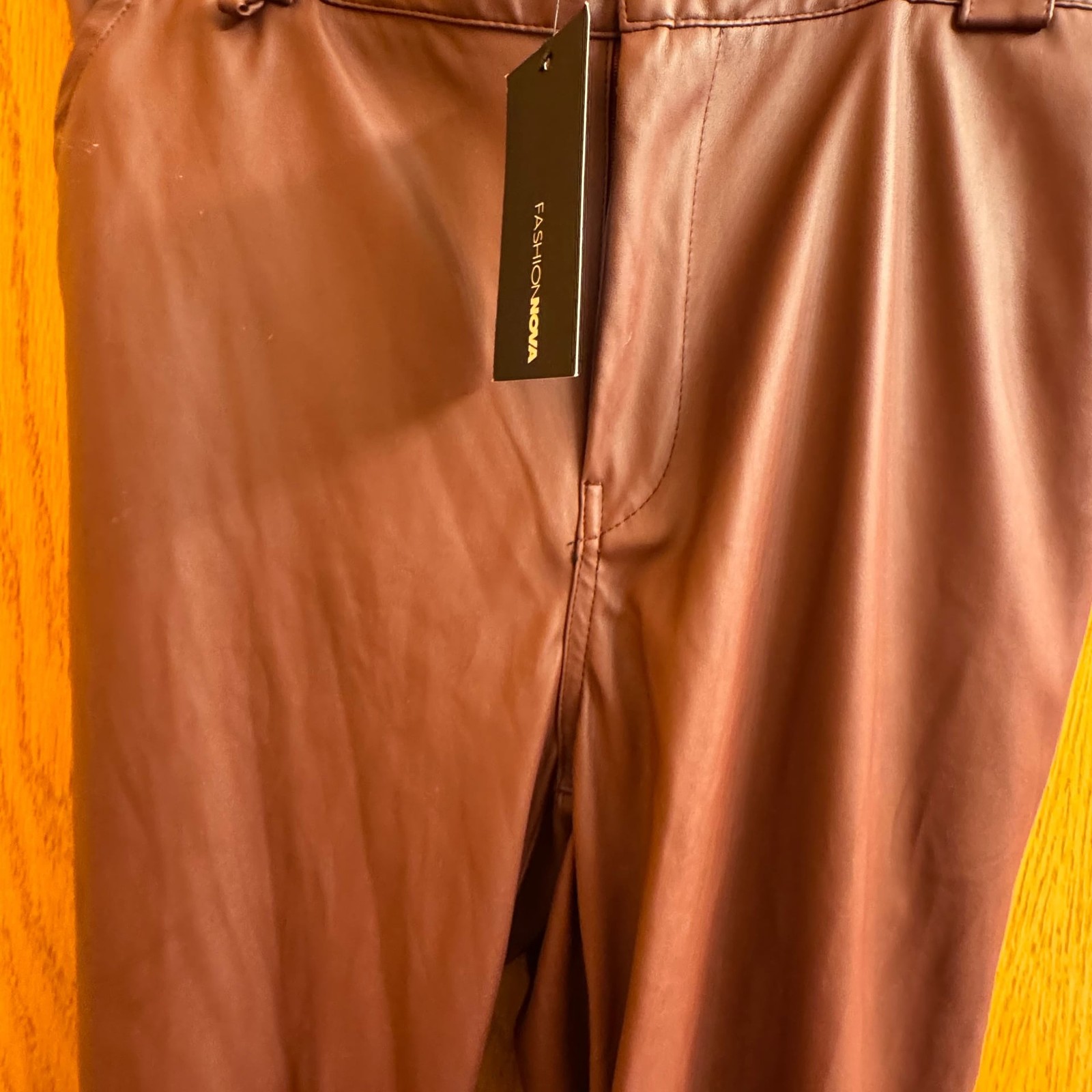как выглядит Fashion Nova Faux Leather Pants Chocolate Brown, Size M  New with Tags фото