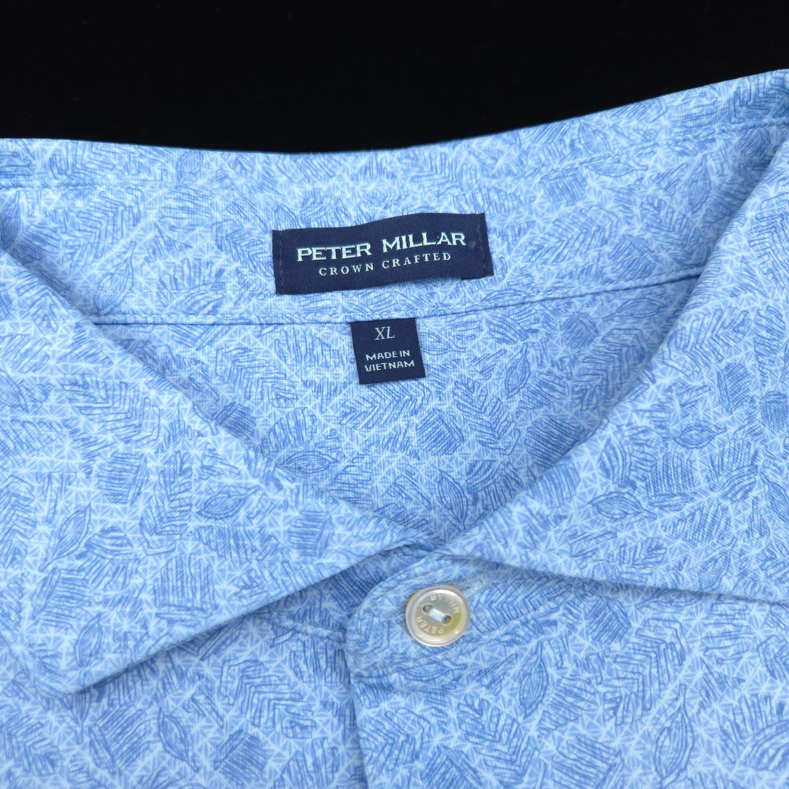 Peter Millar Golf Polo Shirt -XL Tailored Blue Floral Palm- Crown Summer Comfort