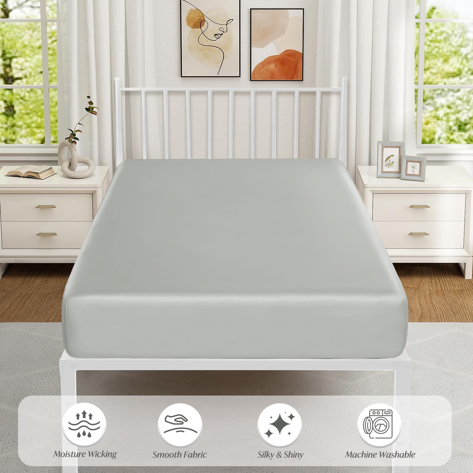 Cot Fitted , 31 x 75 Inch Light Grey Cot Sheets, Ultra Soft and Breathable Sa...