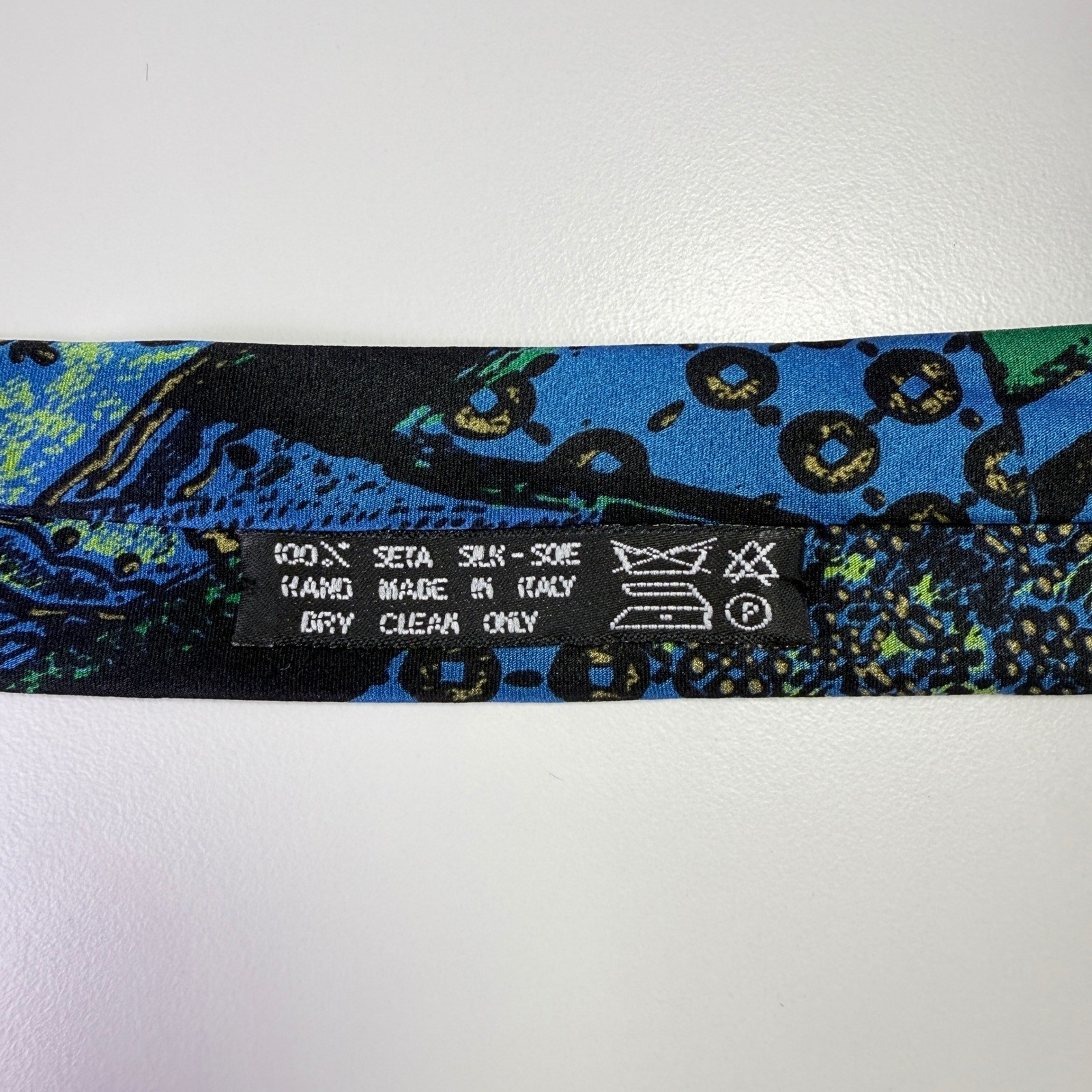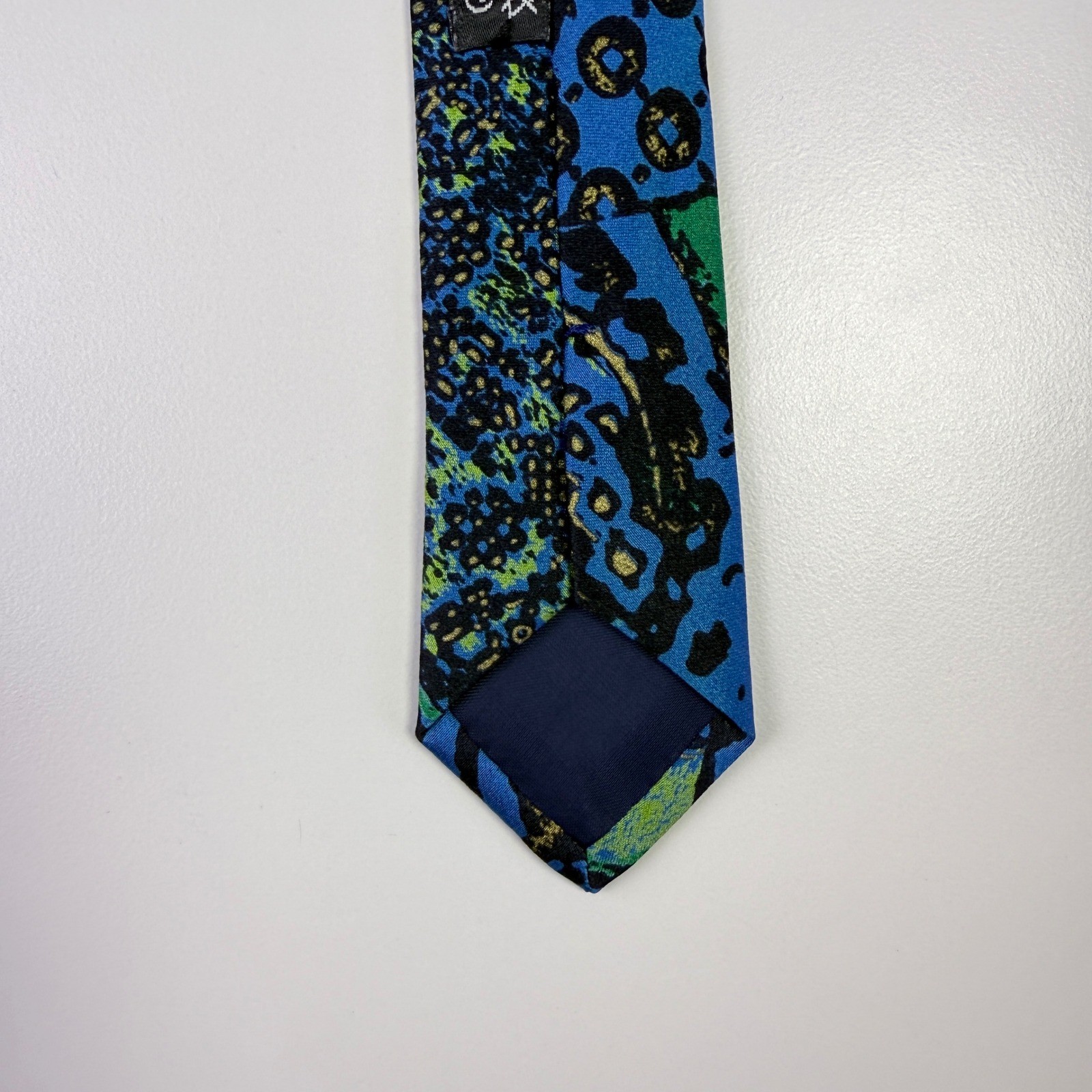 Ameri Handmade Italy 100 Silk Tie Blue Green Abstract Paisley Patchwork 56x3.5