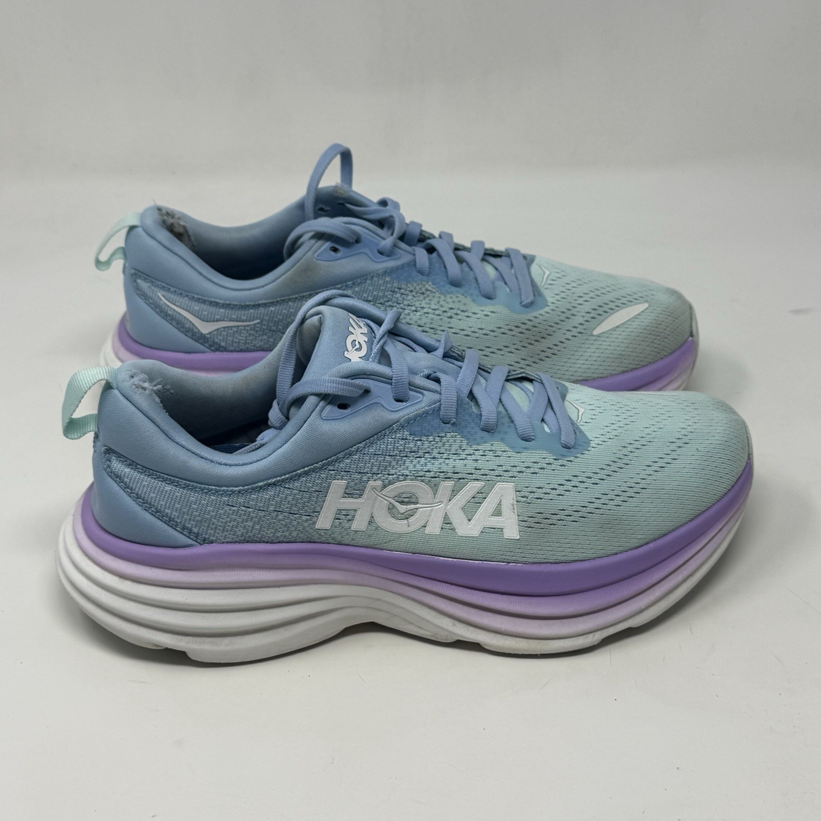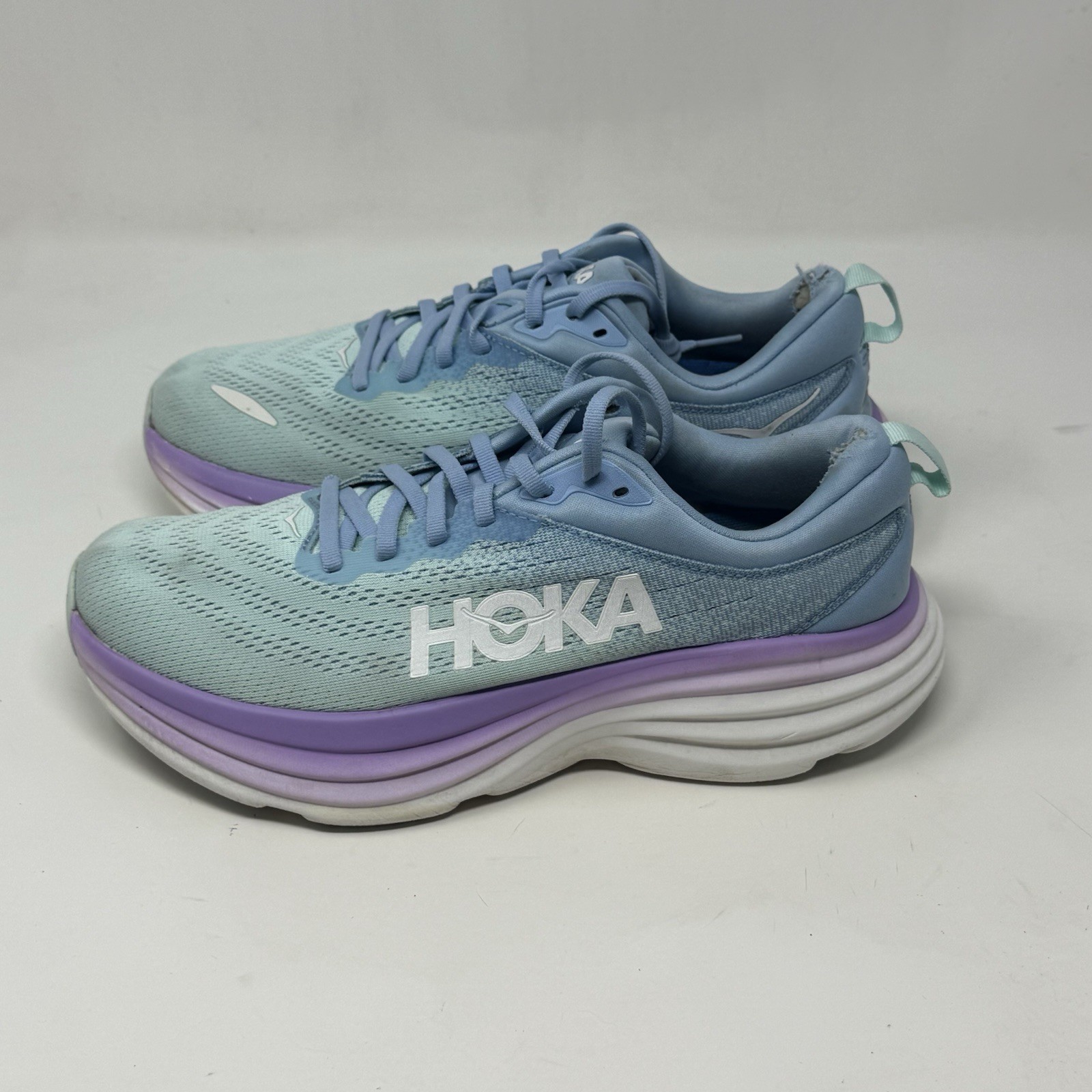Hoka One One Bondi 8 Womens 9 Blue Green Lilac Running Shoes Sneakers