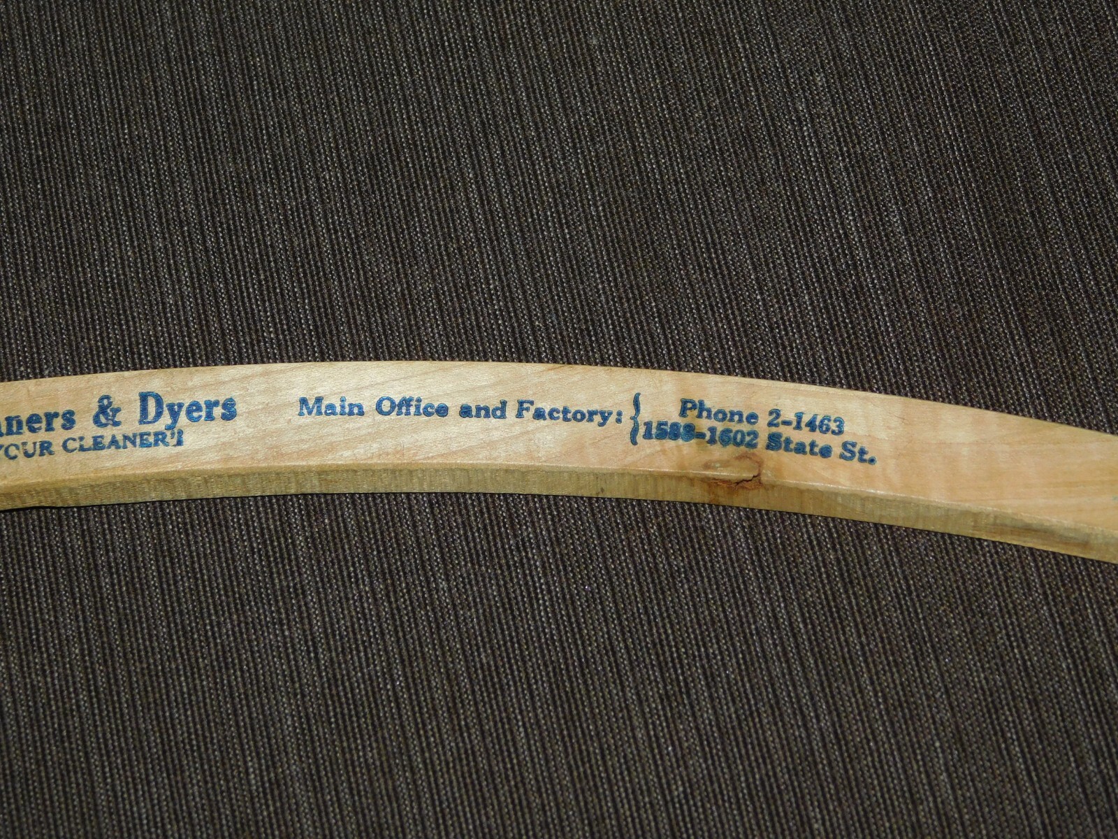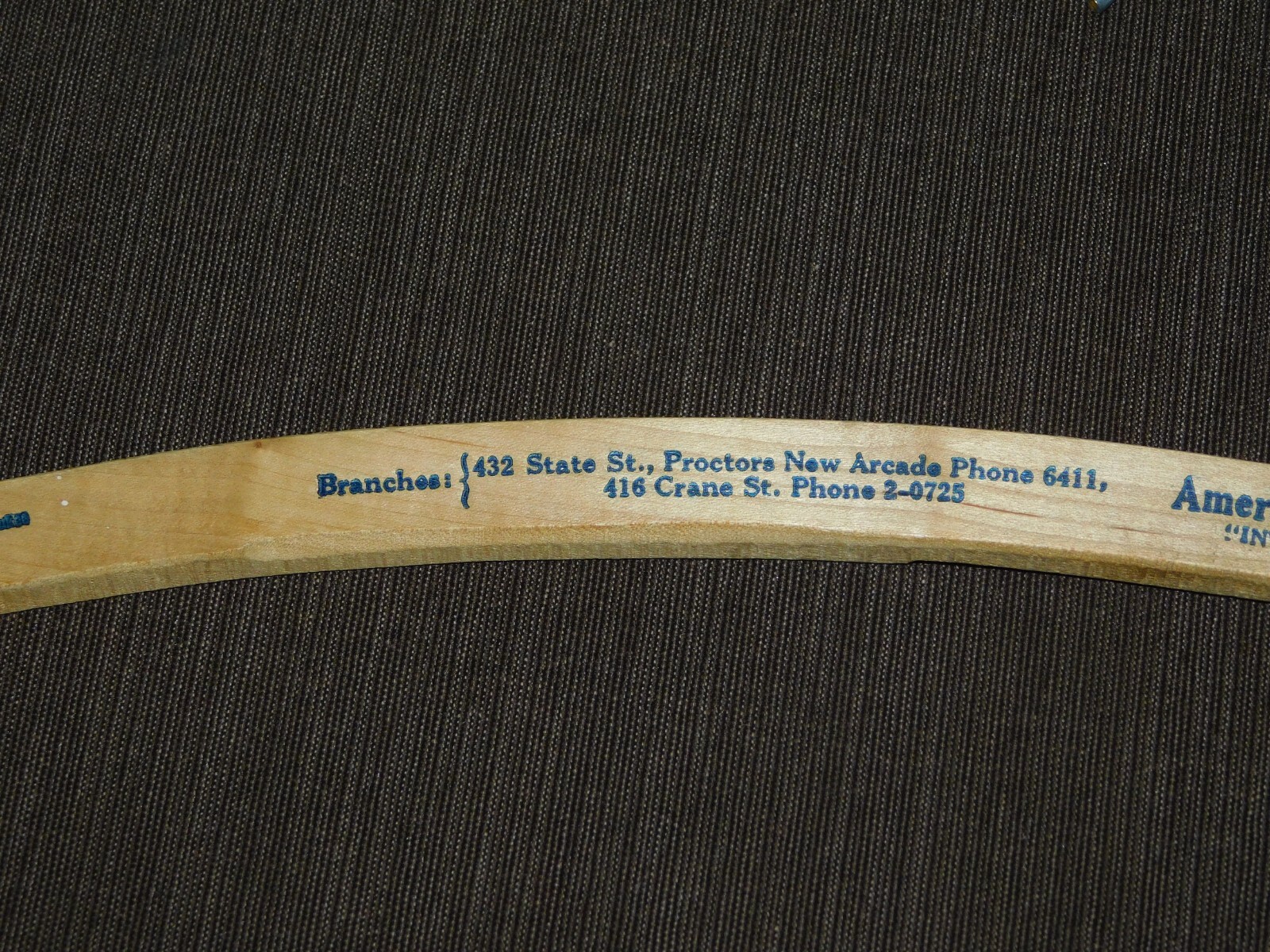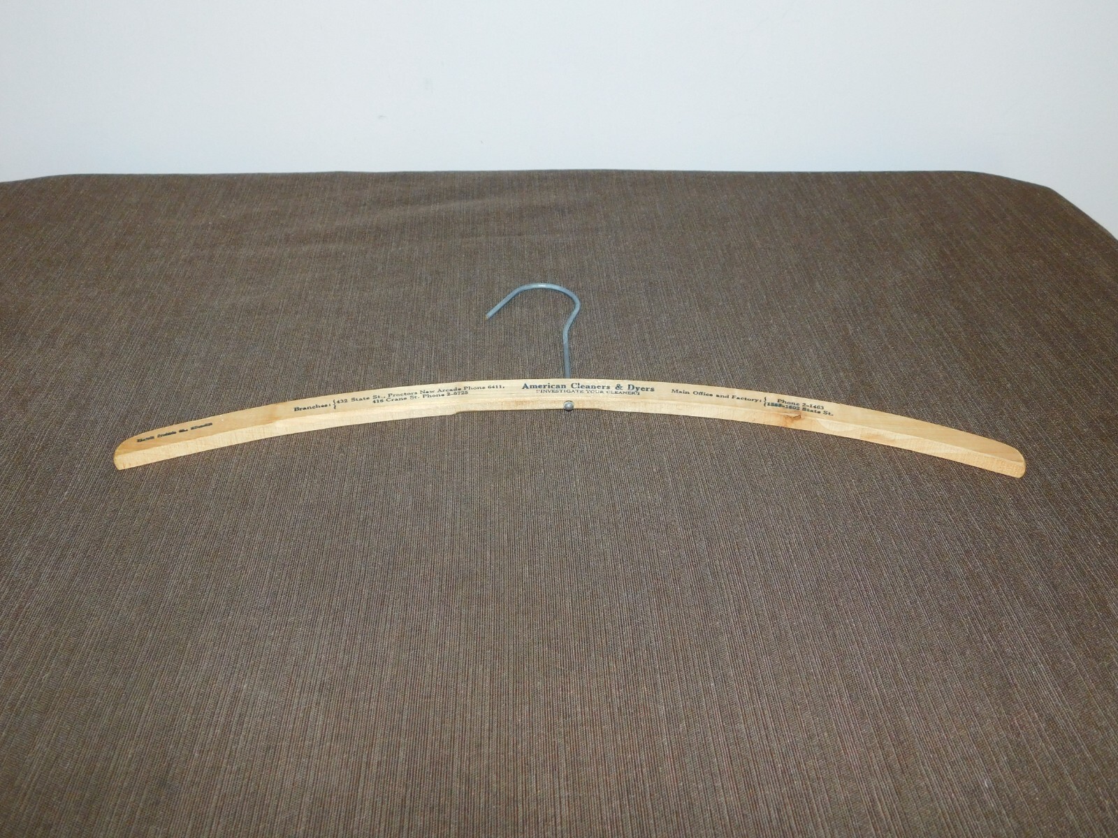VINTAGE 16 1/4 AMERICAN CLEANERS DYERS PROCTORS NEW ARCADE WOOD CLOTHES HANGER