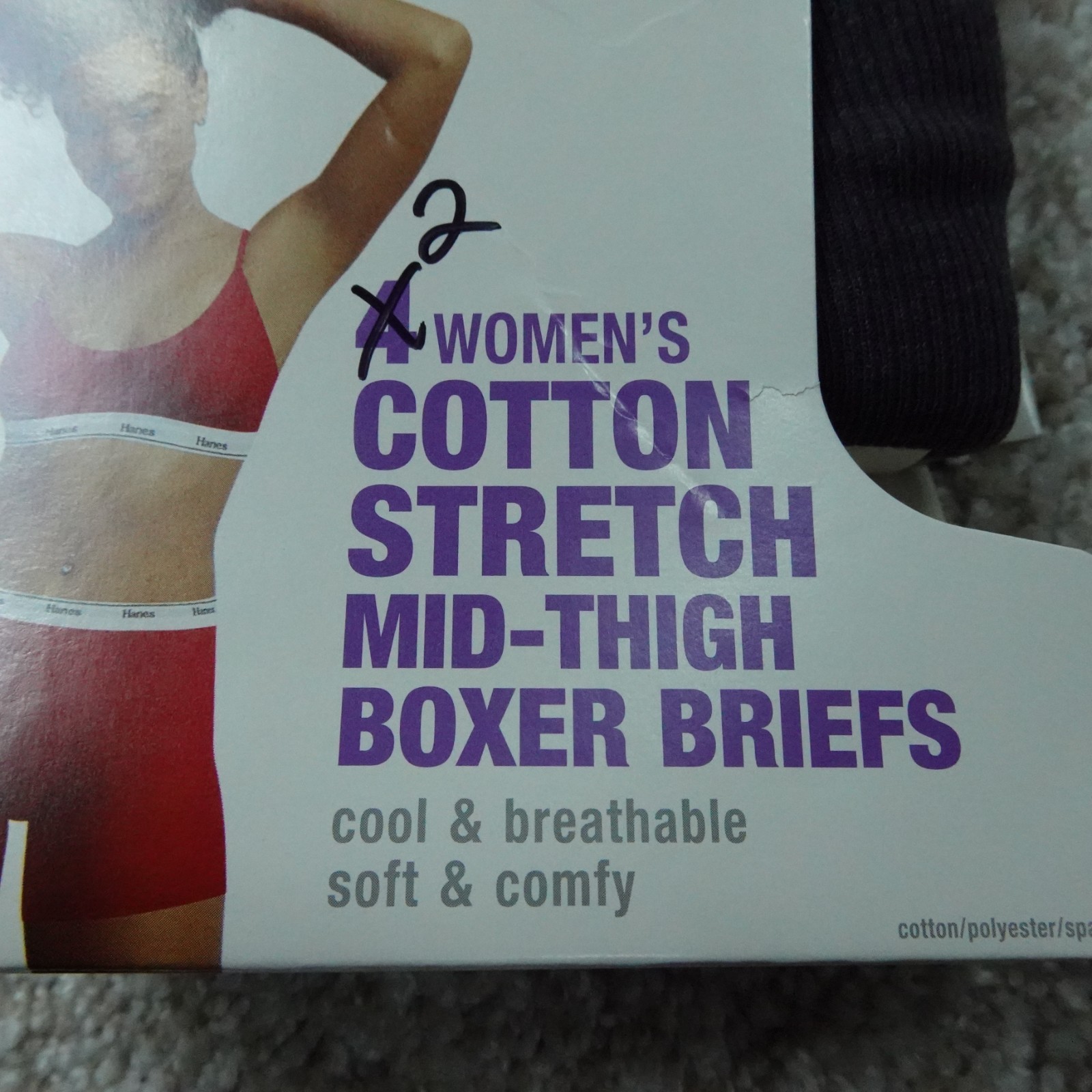 как выглядит Hanes Underwear Womens 8 Extra Large Mid Thigh Boxer Briefs Black Pink 2 Pairs фото