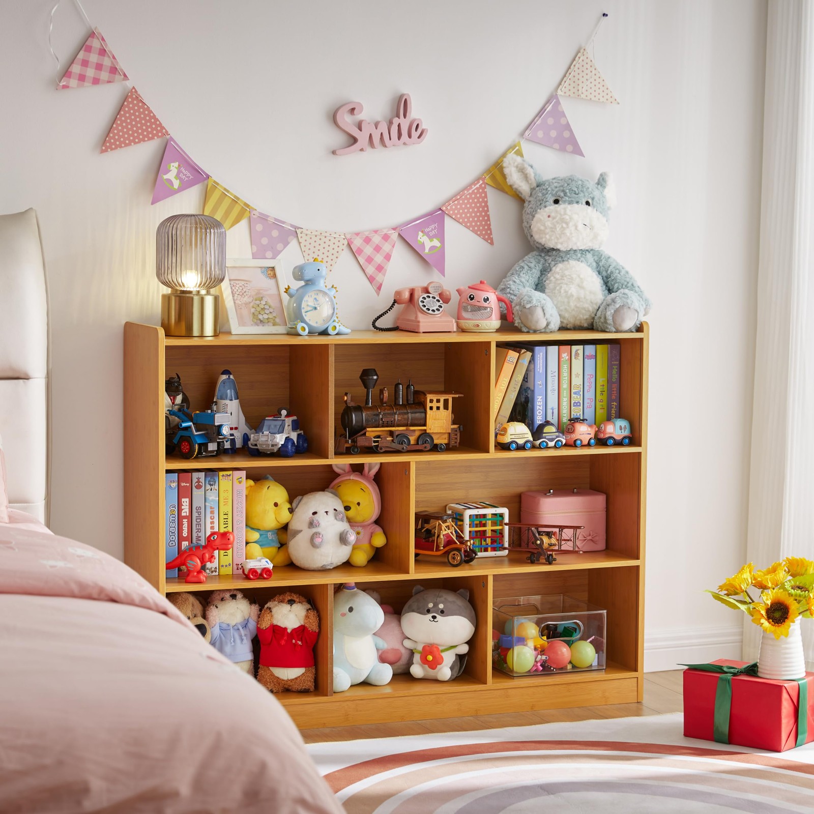 3-Tier Bookshelf 8-Section Wooden Bookcase Storage Organizer Natural