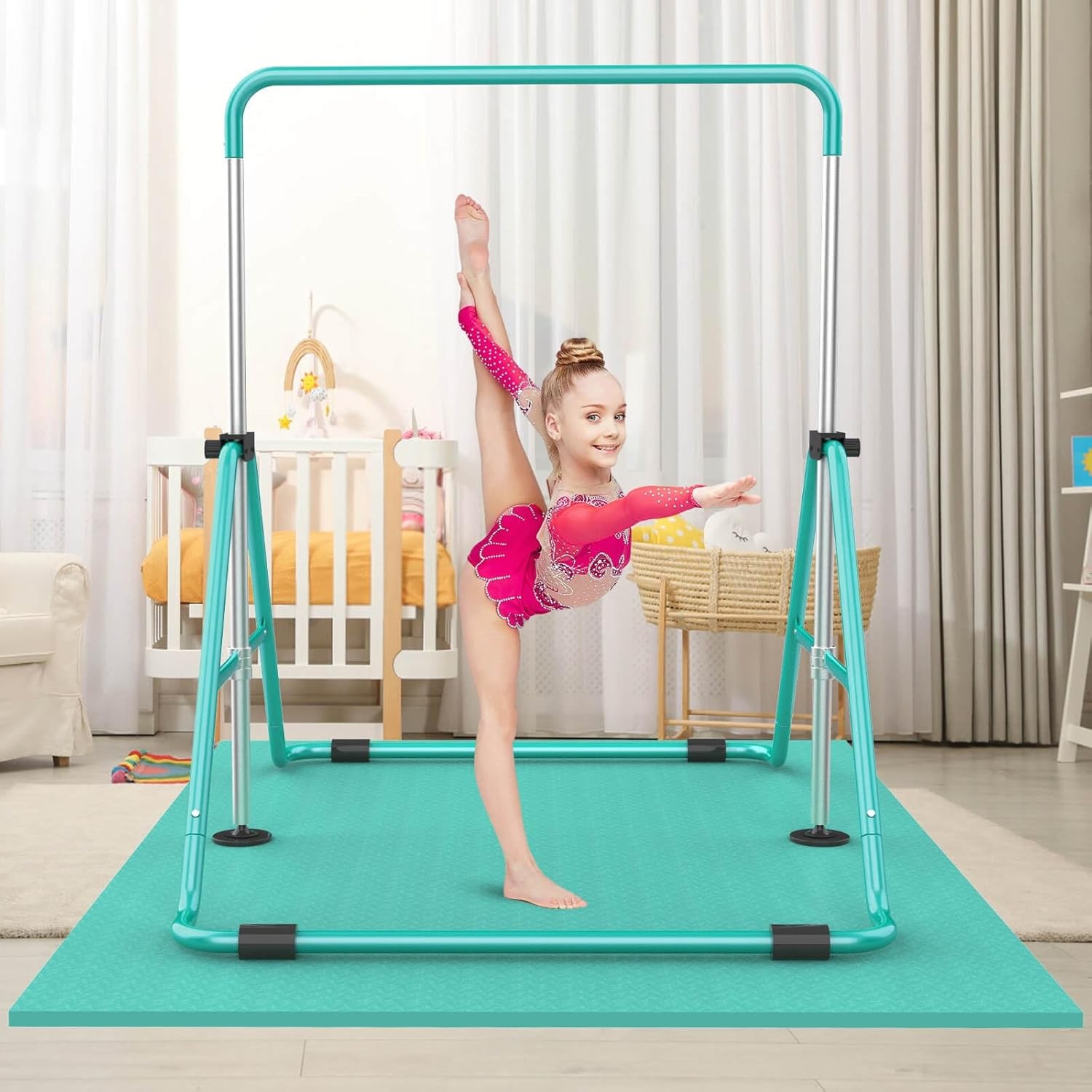 Kids Gymnastic Bars Adjustable Height Folding Training Kip Bar Expandable Home