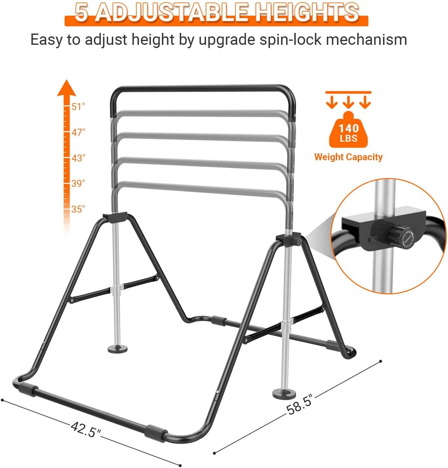 Foldable Kids Gymnastics Bar 5-Height Adjustable Indoor/Outdoor 140lb Limit