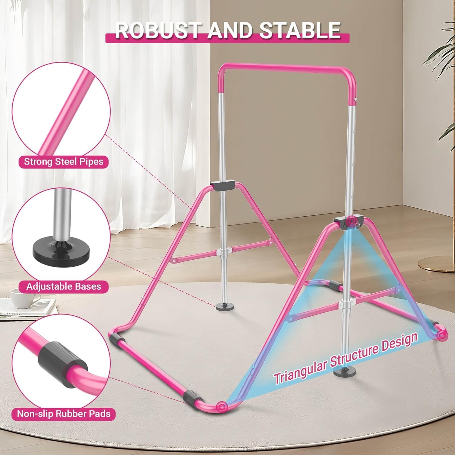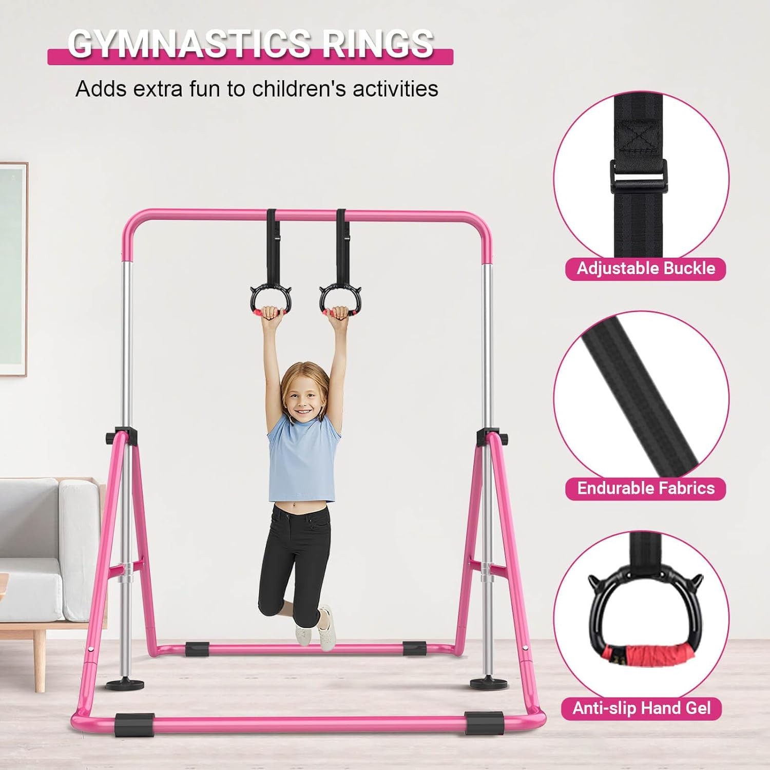 Foldable Kids Gymnastics Bar 5-Height Adjustable Indoor/Outdoor 140lb Limit