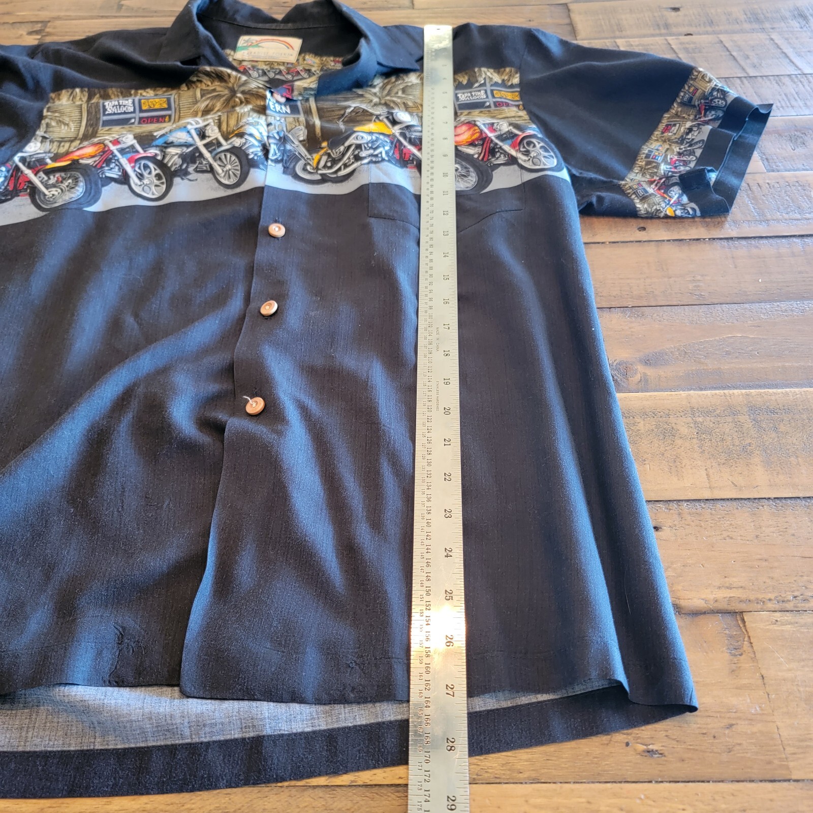 VTG Made Hawaii Hawaiian Shirt Paradise Found Rayon Tiki Motorcycle Lg Aloha HTF
