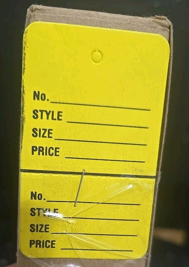Price tags for clothing, 1000 yellow paper hang tags, full box, 7cm x 4cm