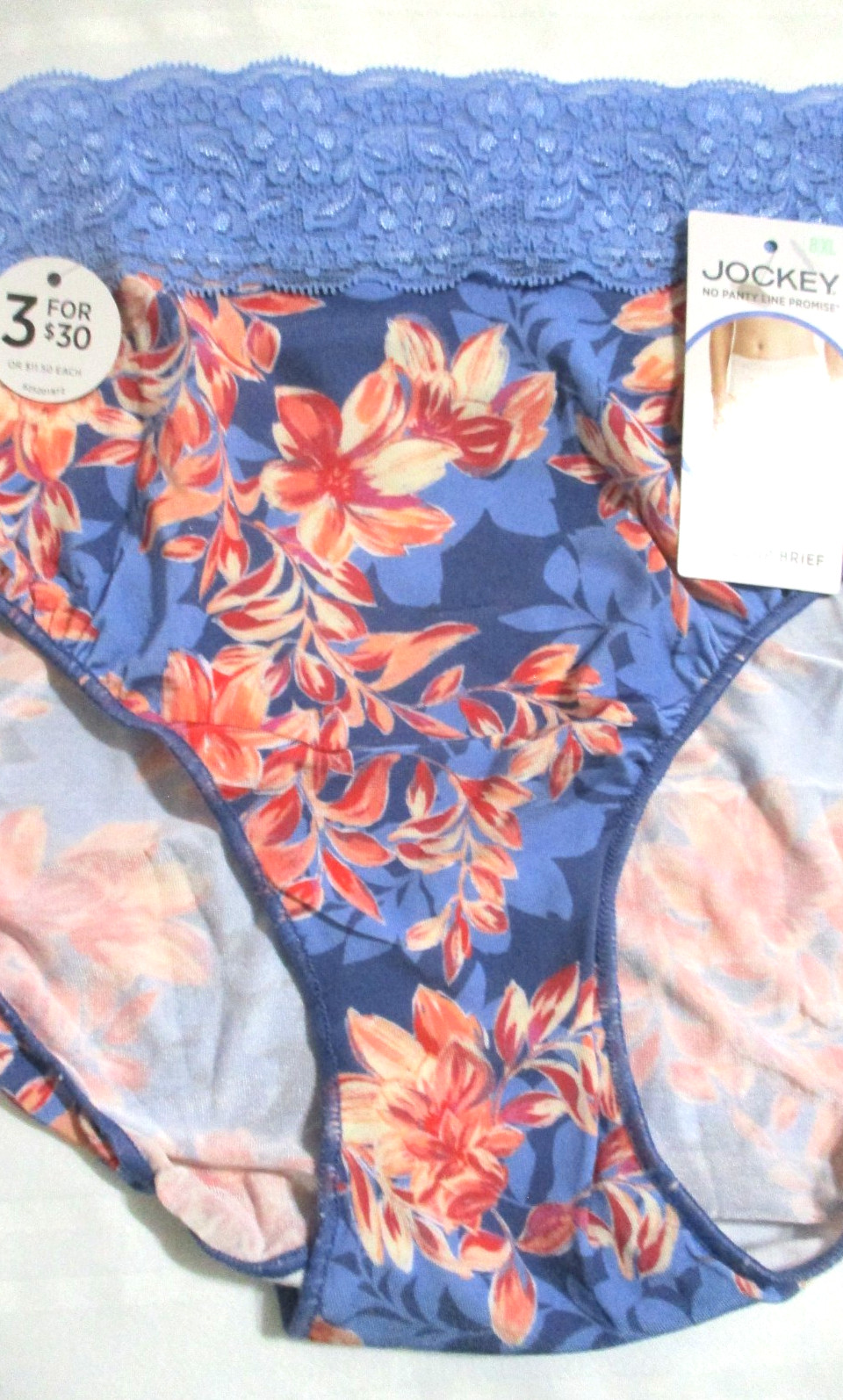 как выглядит JOCKEY SZ 8 XL LACE HIP BRIEF 1873 TACTEL NO PANTY LINE PROMISE BLUE PANTIES фото