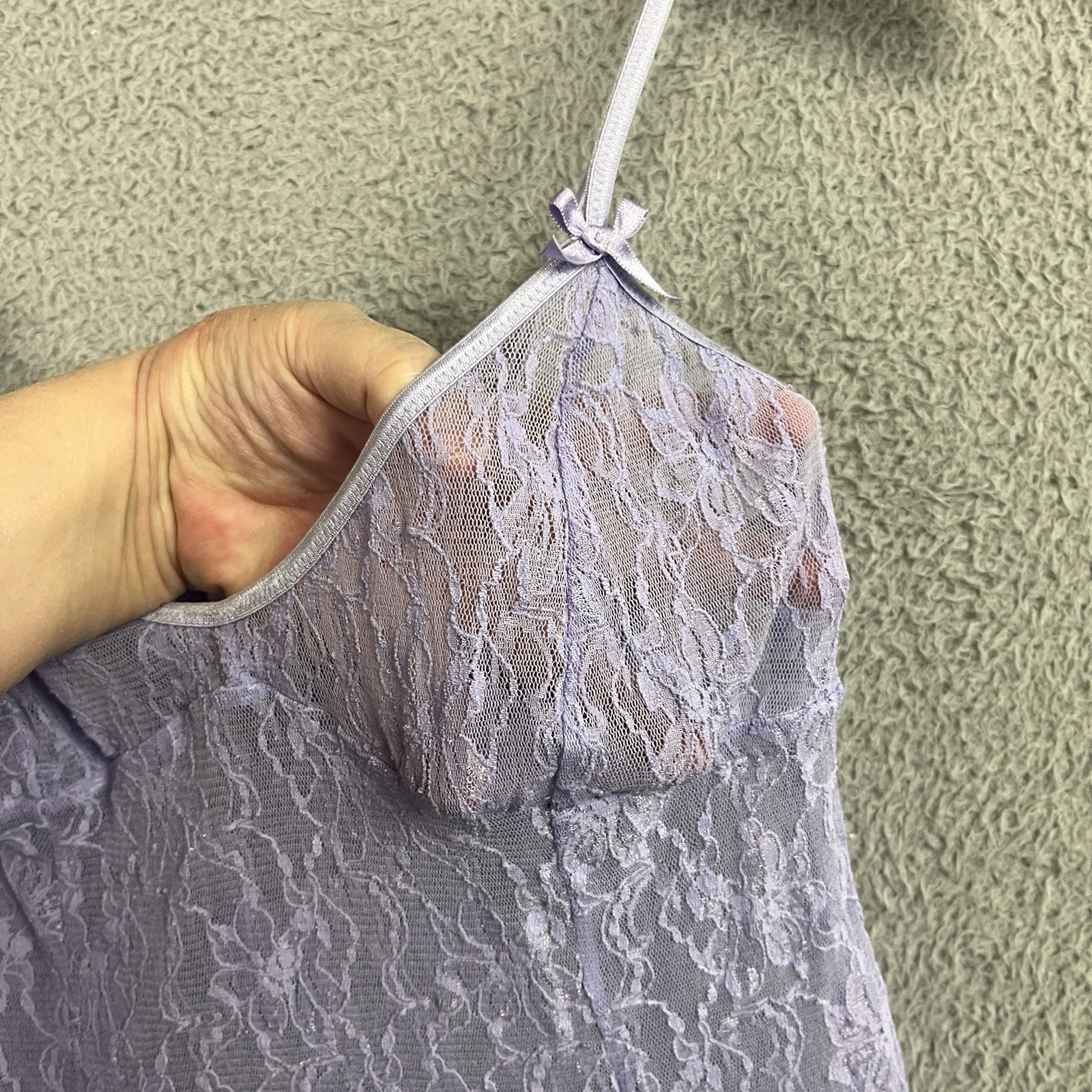 как выглядит VTG Victorias Secret Lavender Sheer Lace Ruffled Mini Dress Nightie Size S Y2K фото