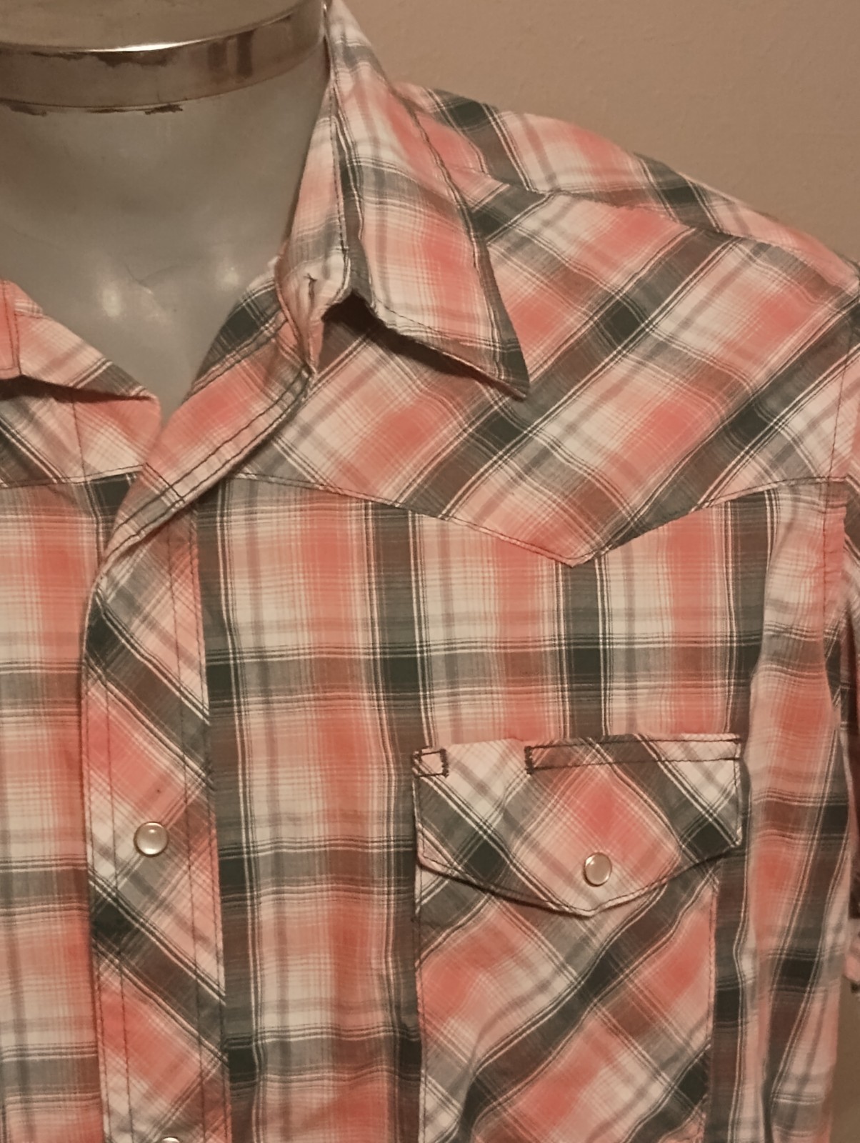 как выглядит Wrangler Pearl Snap Western Shirt 2XL Plaid Short Sleeve Vintage фото