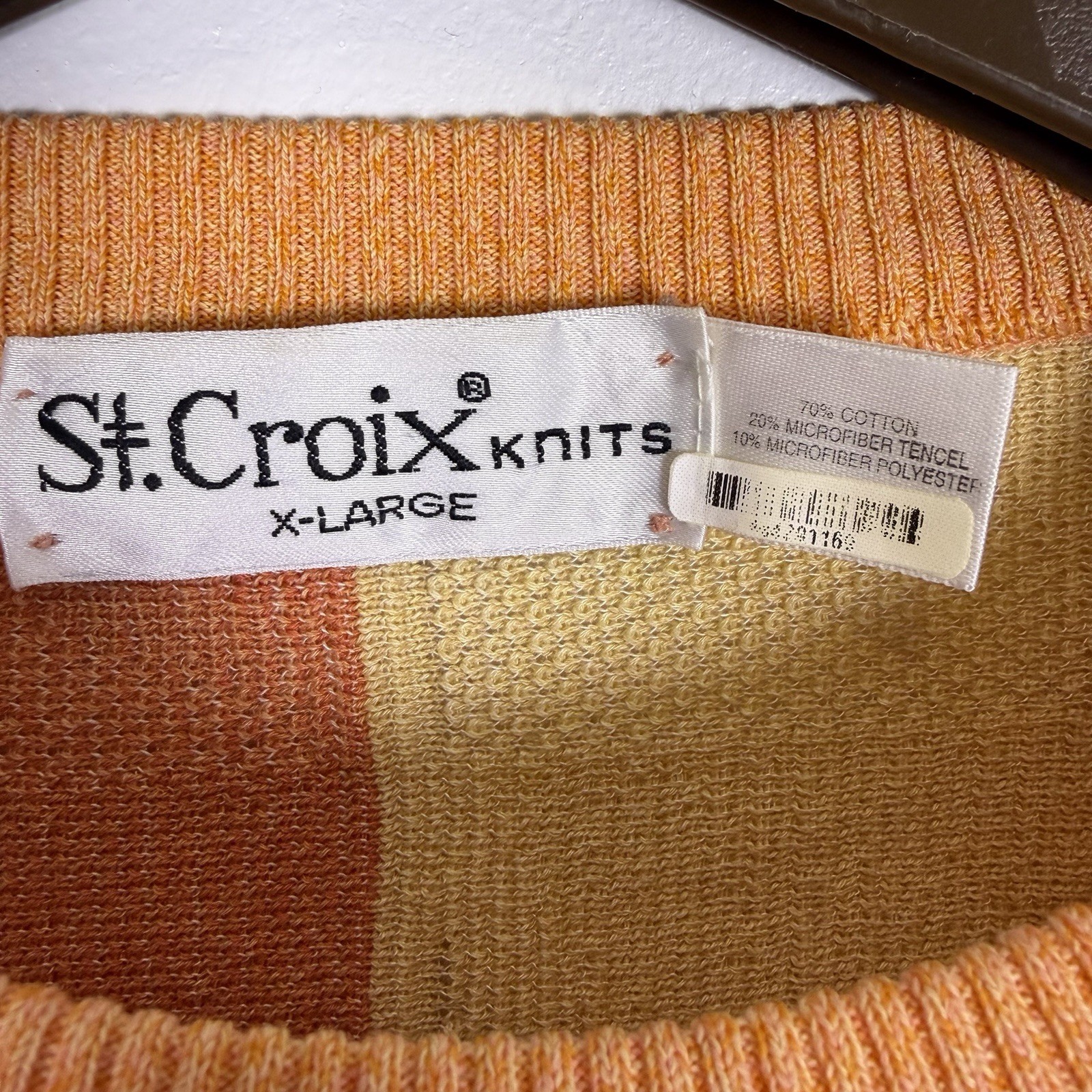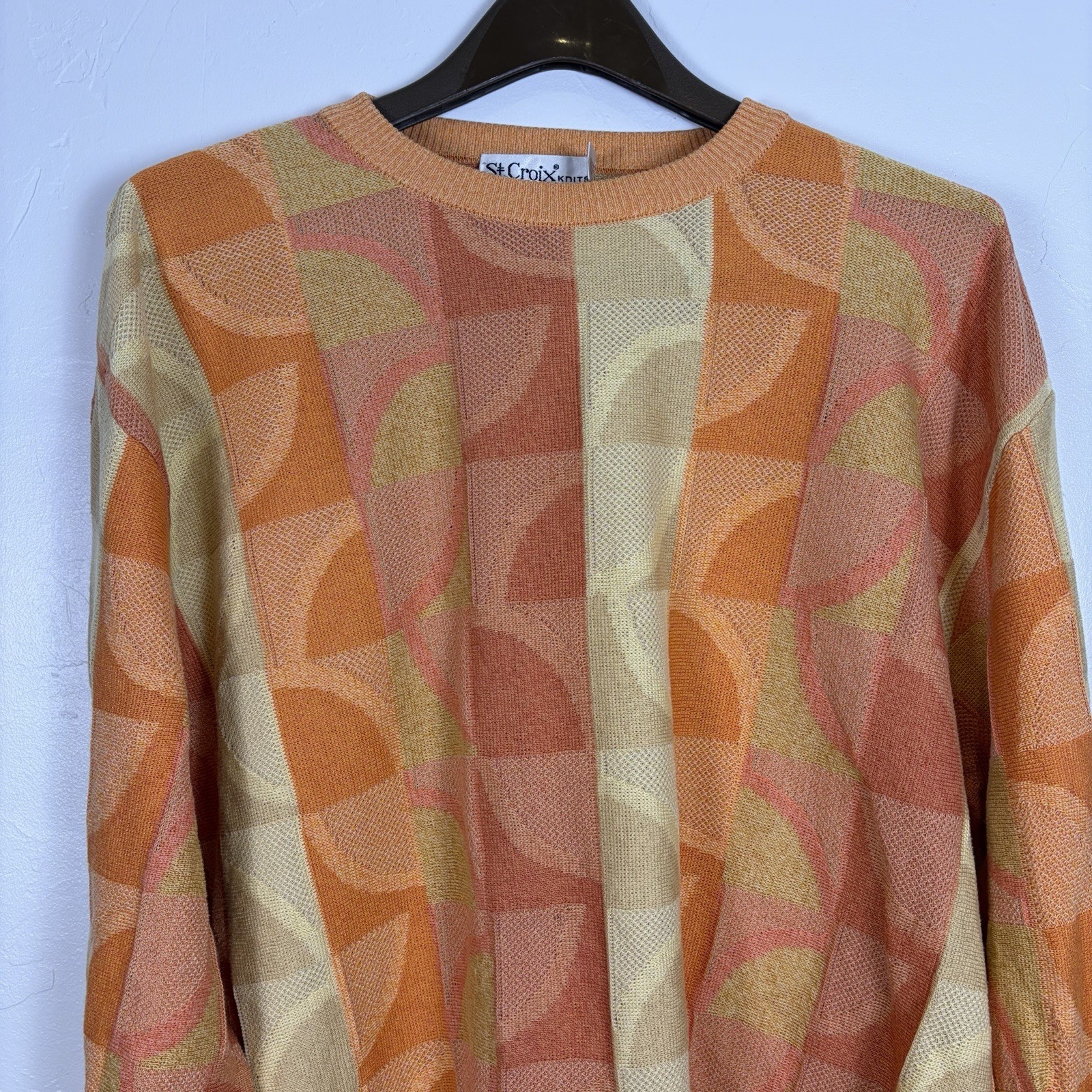 St. Croix Knits Vintage Men's Pullover Sweater Size XL Orange Yellow Geometric