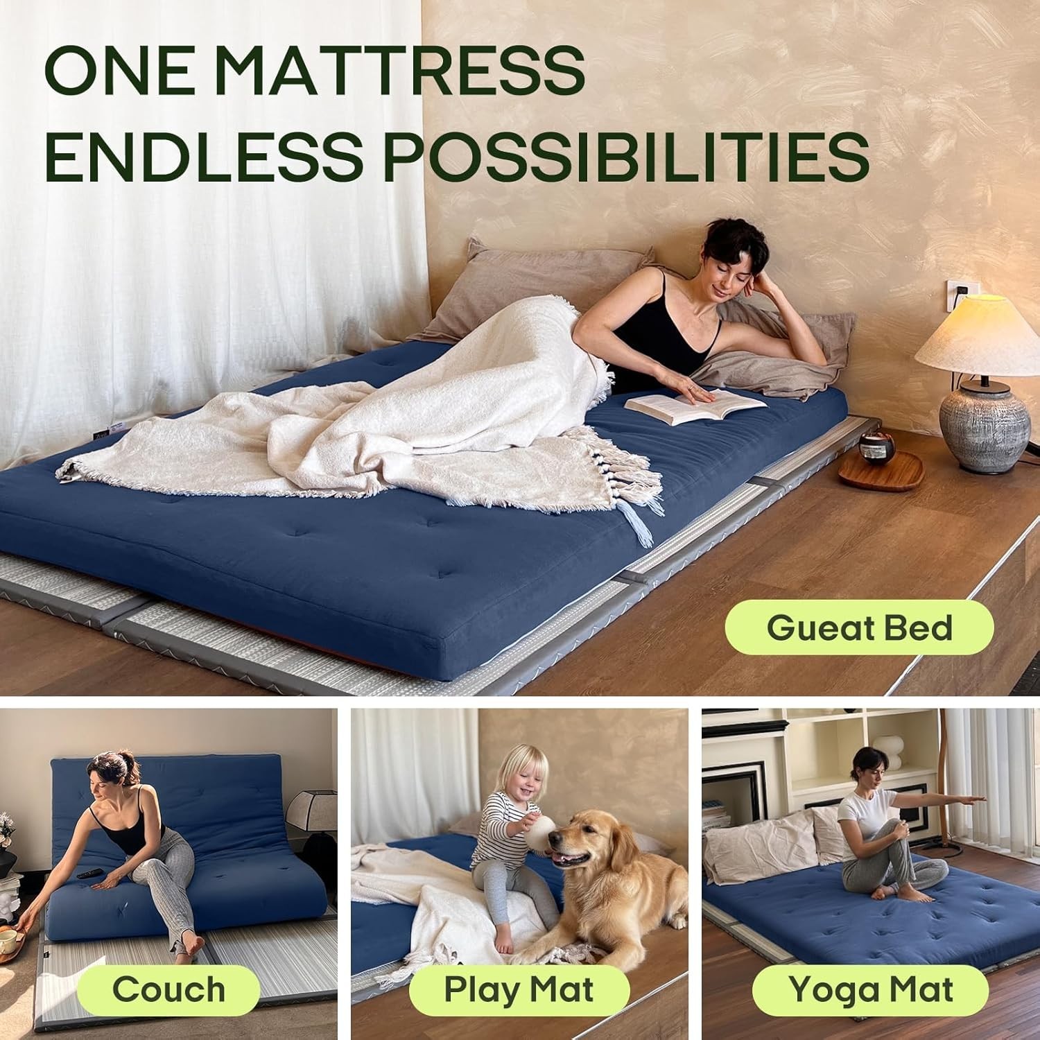 Futon Floor Mattress Japanese Foldable Sleeping Tatami Roll Up Floor Mat Pad