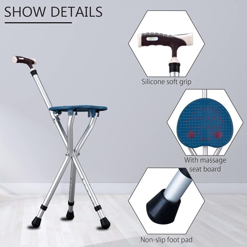 как выглядит Folding Cane W/ Seat Adjustable Walking Stick LED Light Portable Supportive Aid фото