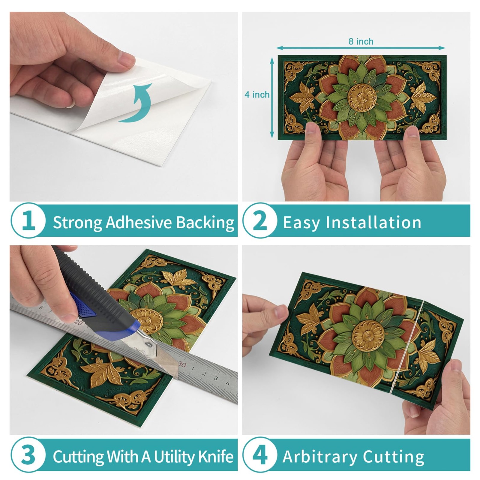 16Pcs Tile Decals - Peel Stick Kitchen Backsplash 8 x 4 Decorative Wall T...