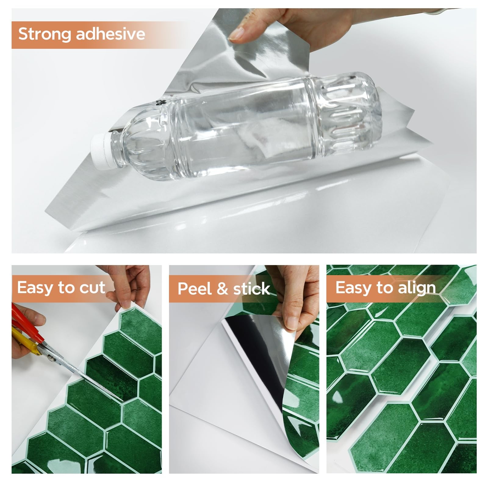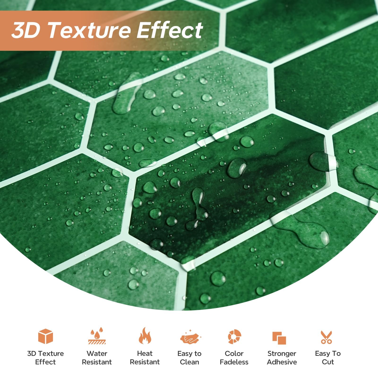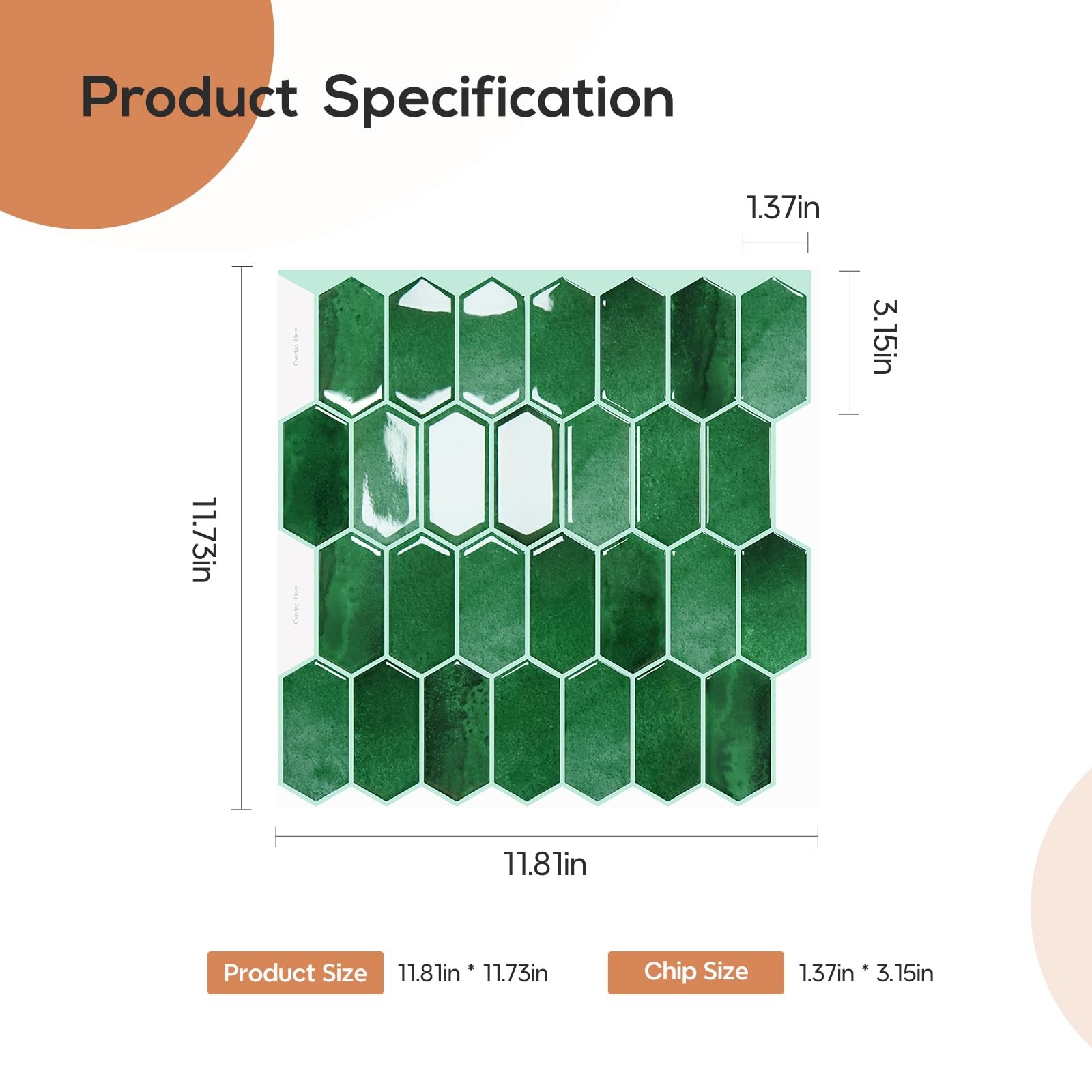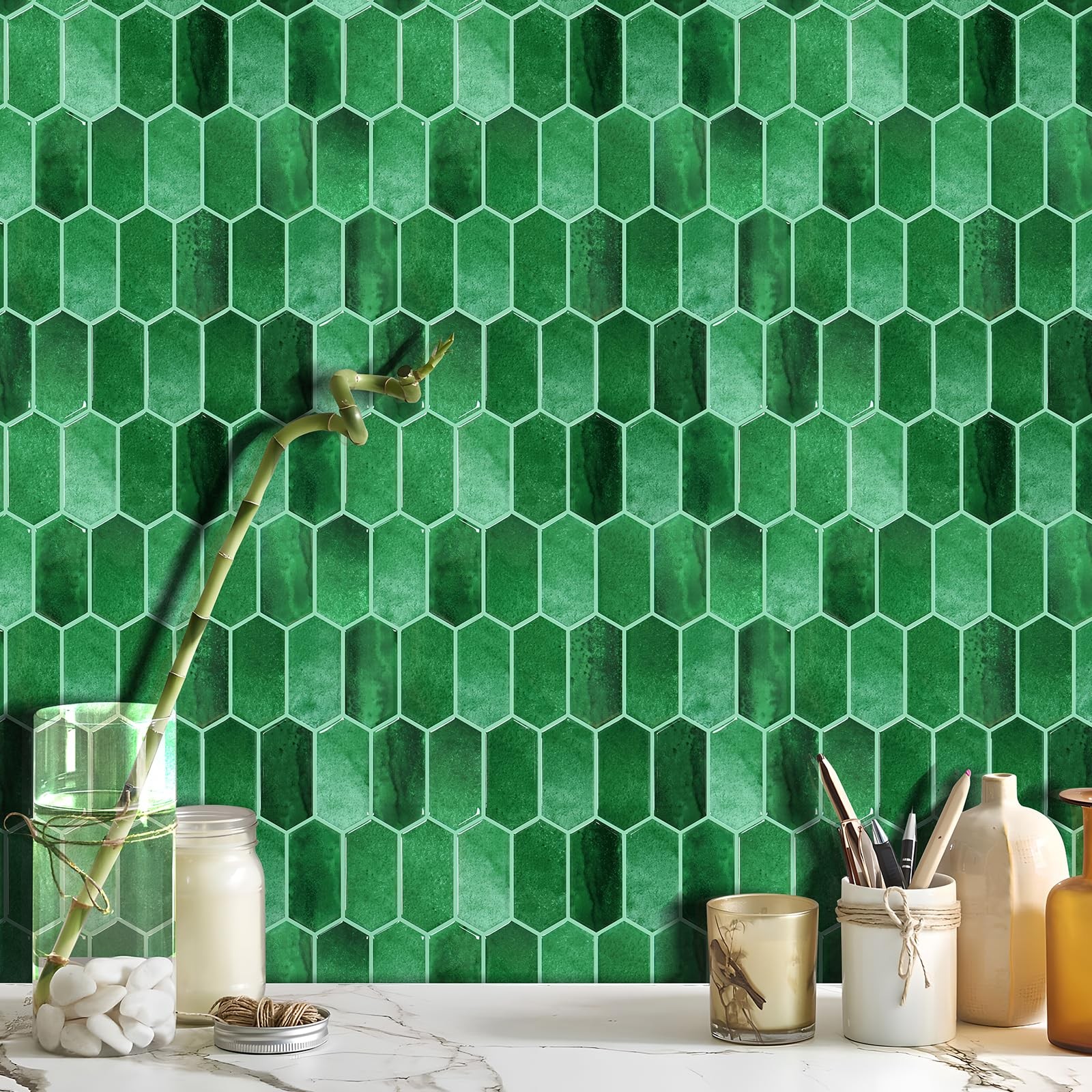 10 Sheets Green Kitchen Backsplash Tiles Peel and Stick, Long Hexagon Self Ad...