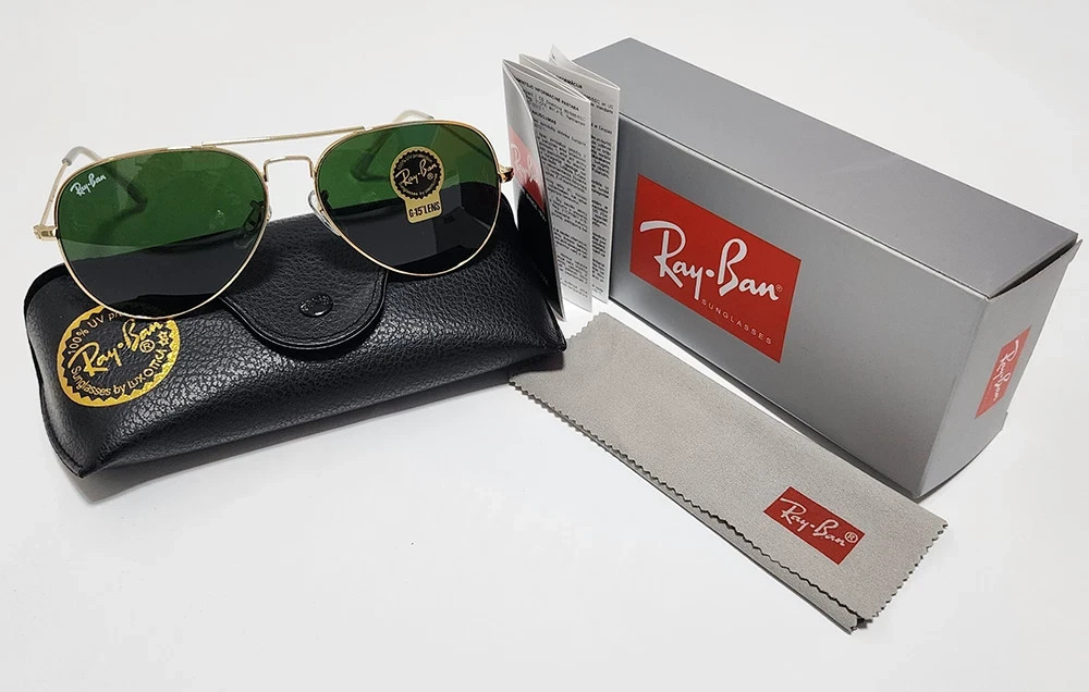 как выглядит Ray-Ban RB3025 Aviator Sunglasses Gold Frame Green Glass Lens 58mm USA Shipping фото