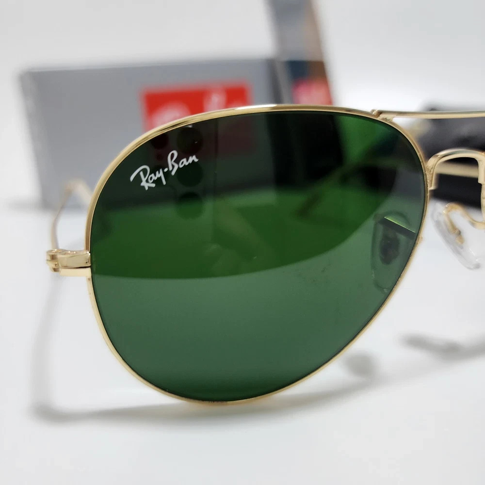 Ray-Ban RB3025 Aviator Sunglasses Gold Frame Green Glass Lens 58mm USA Shipping