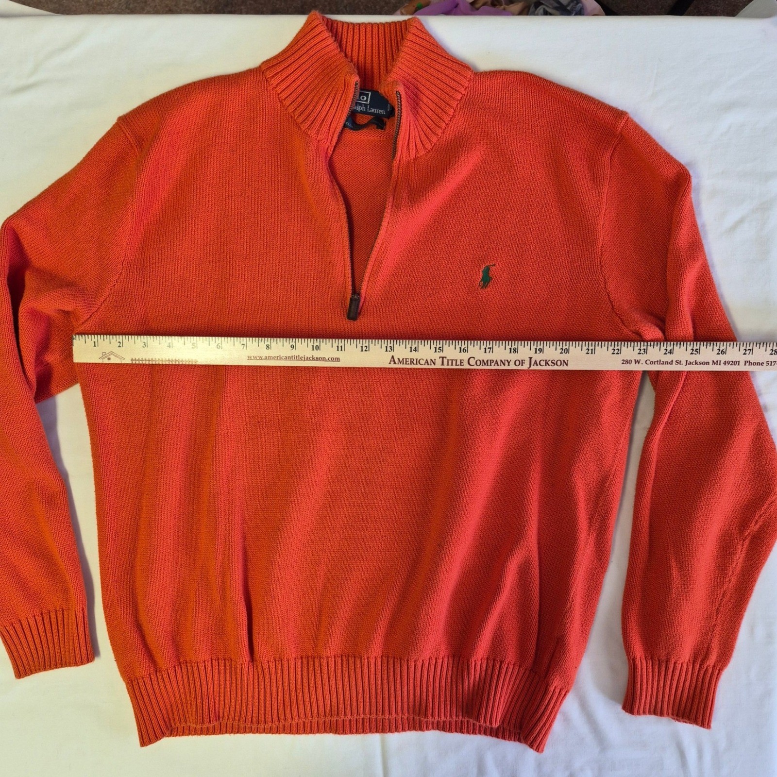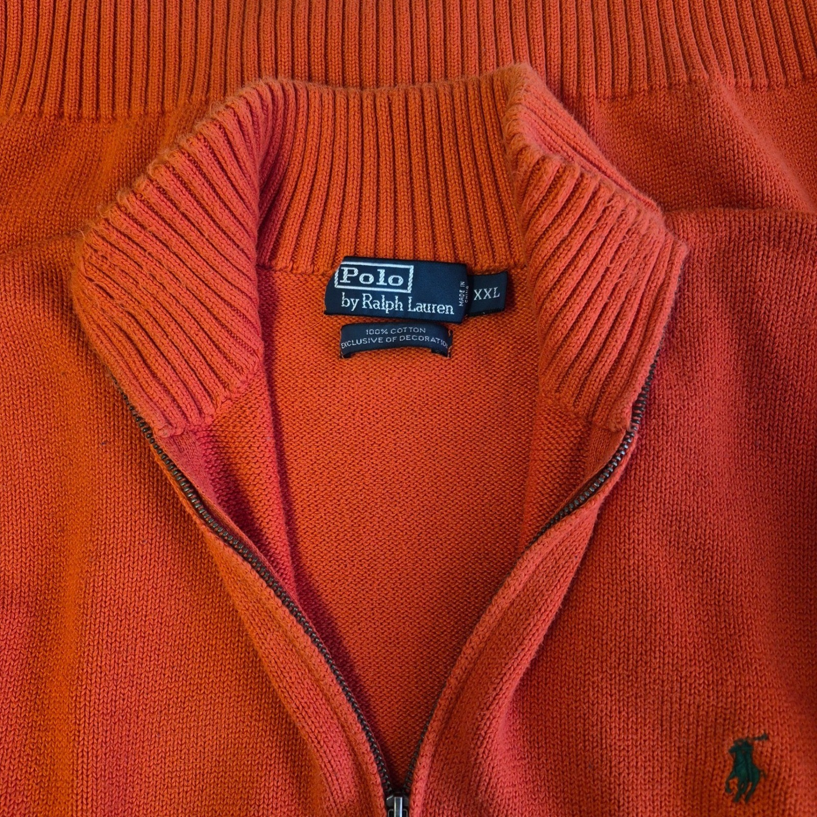 как выглядит Polo Ralph Lauren Mens XXL Mock Neck Quarter Zip Green Pony Vibrant Orange фото