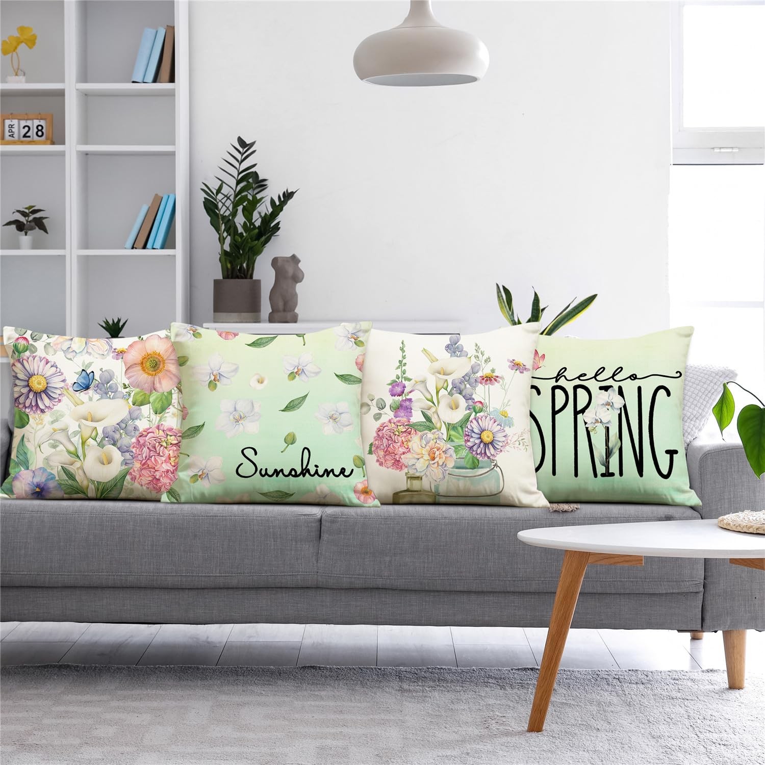 Spring Pillow Covers 18x18 Mint Green Spring Summer Farmhouse Decorations Flo...
