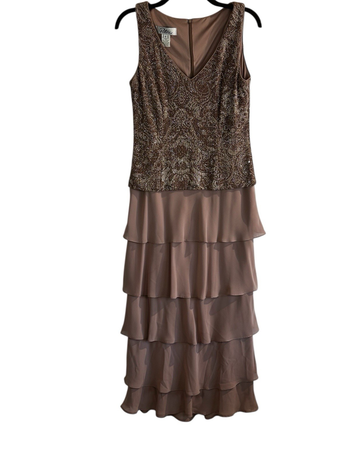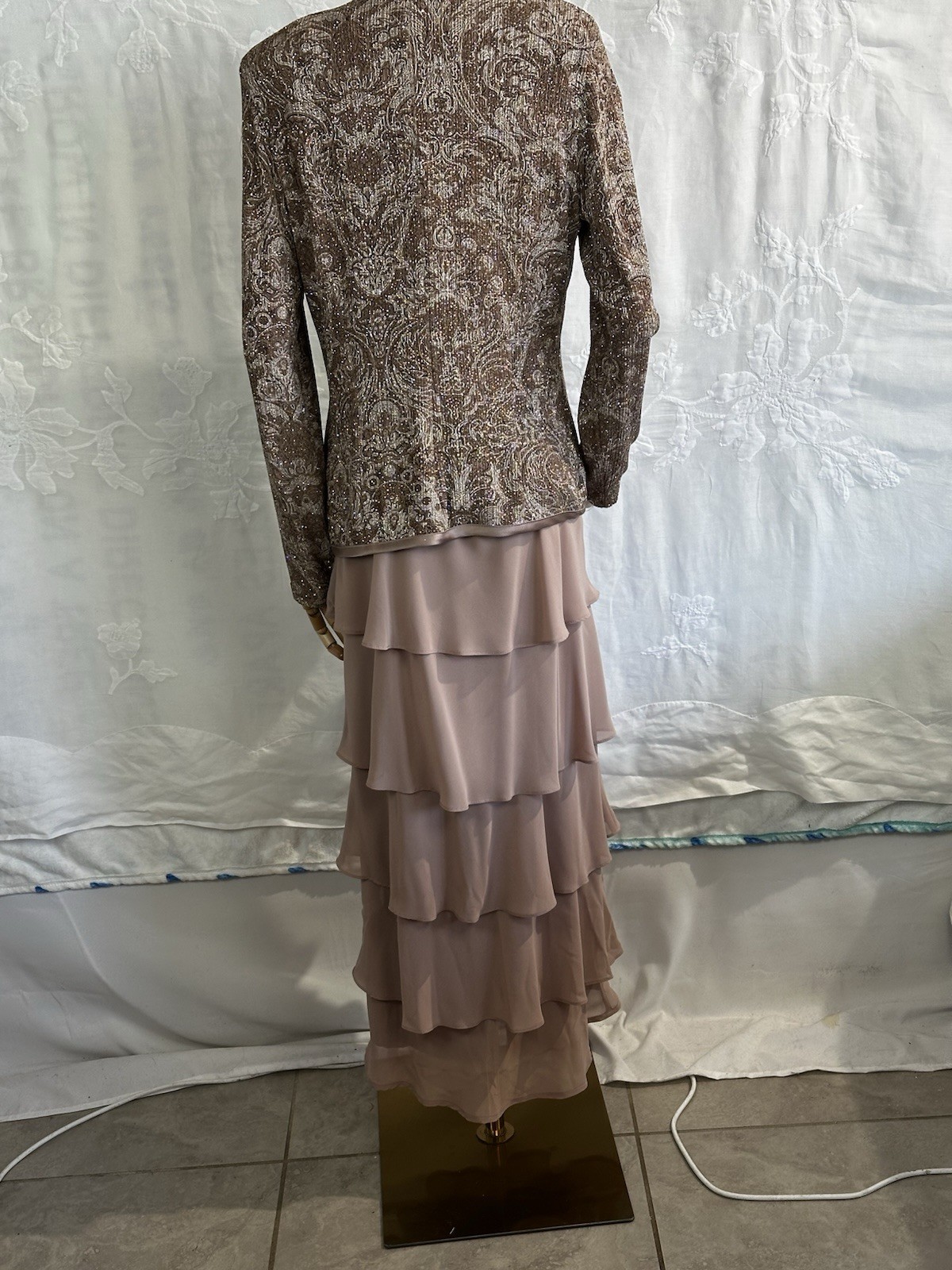 как выглядит Vintage Patra 2 Piece Formal Dress Set Size 6 Mocha Shimmer Jacket Evening Gown фото