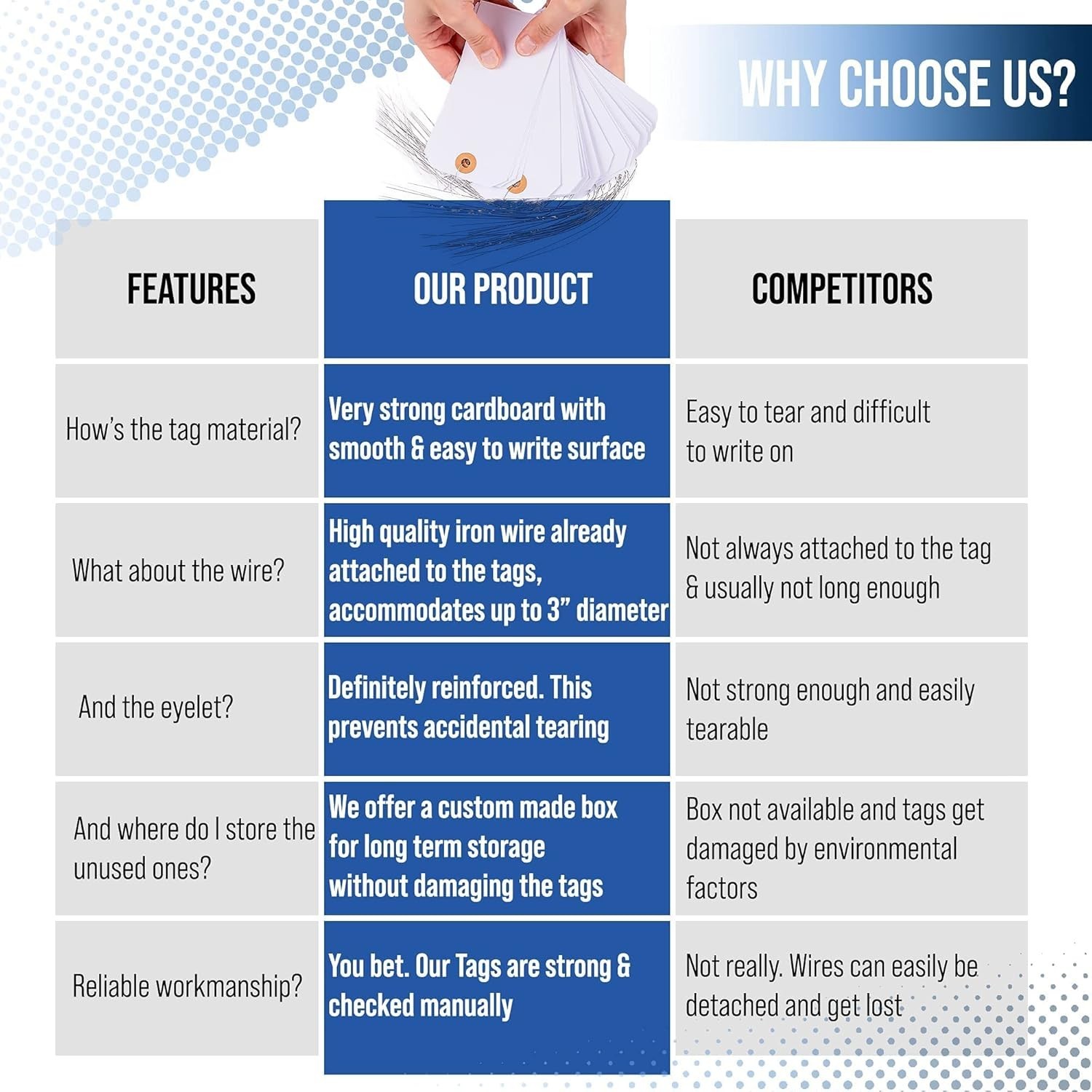 Особенности: Pre-strung, Reinforced Eyelet, Durable, Smooth Writing Surface, Dual-sided, High-Quality Material, Durable Cardboard, Polished Finish, Large Tags, Versatile Uses
