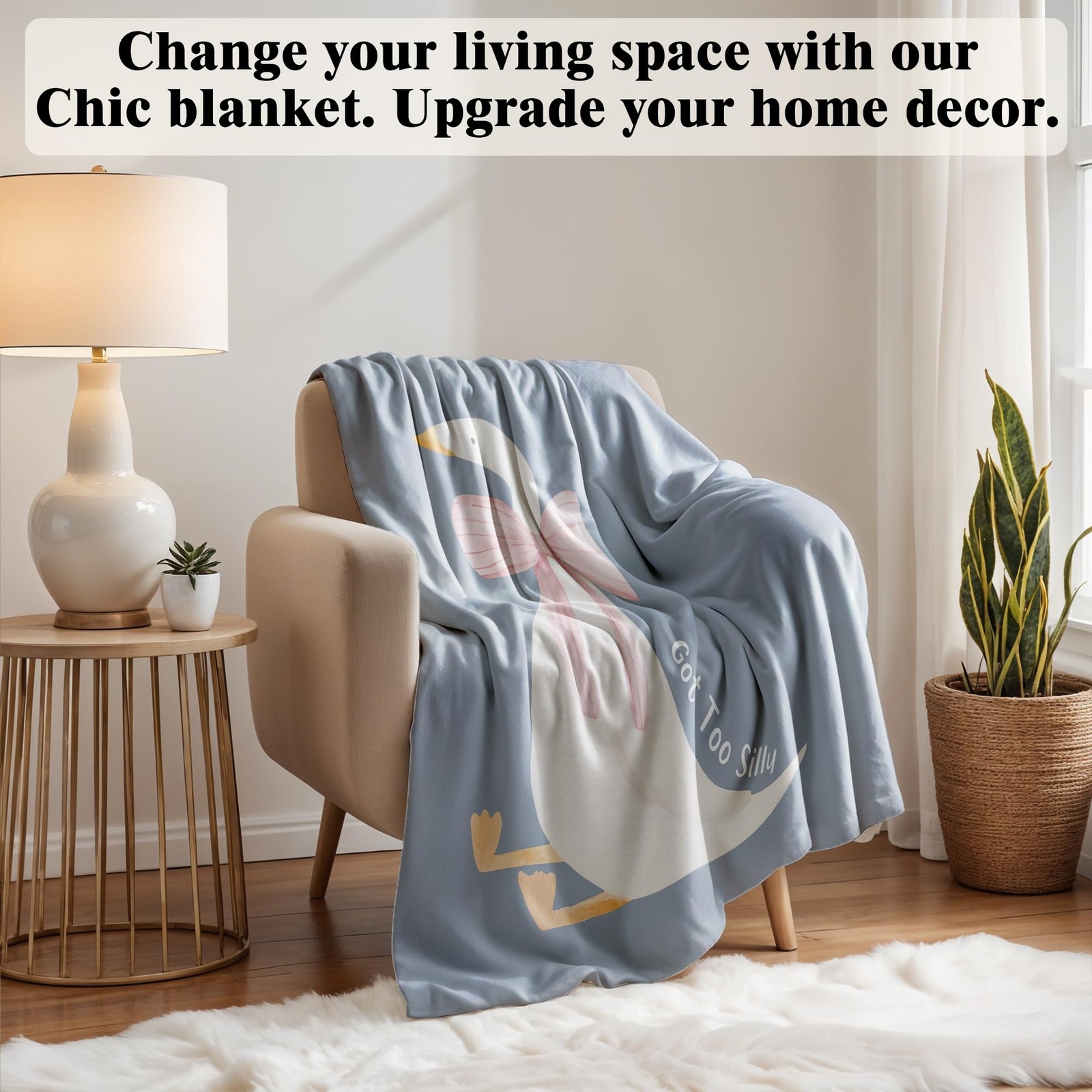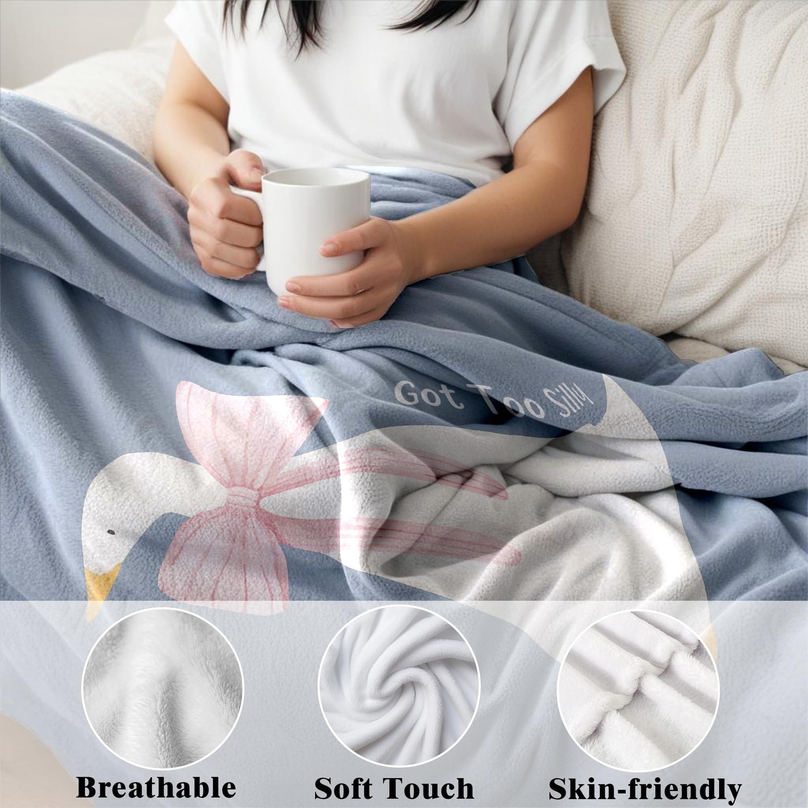 Silly Goose Decor Blanket, Big Pink Bow Blankets, Cute Goose Theme Blanket Th...