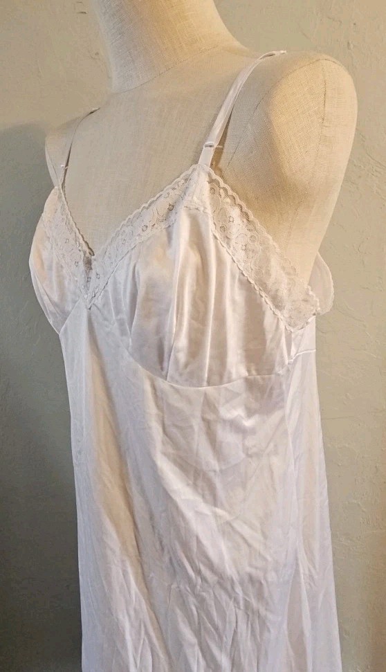 как выглядит Vanity Fair Size 38 White Silky Soft Nylon Full Slip w/Lace фото