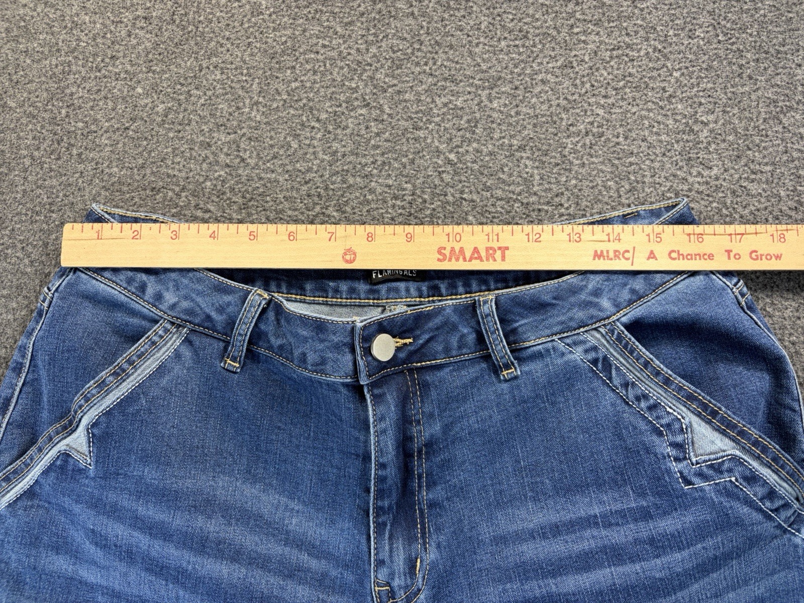 Flamingals Jeans Womens XXL Blue Denim Wide Leg Whiskered 32x30
