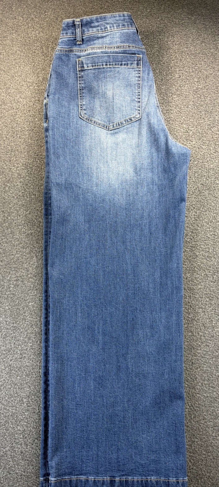 как выглядит Flamingals Jeans Womens XXL Blue Denim Wide Leg Whiskered 32x30 фото