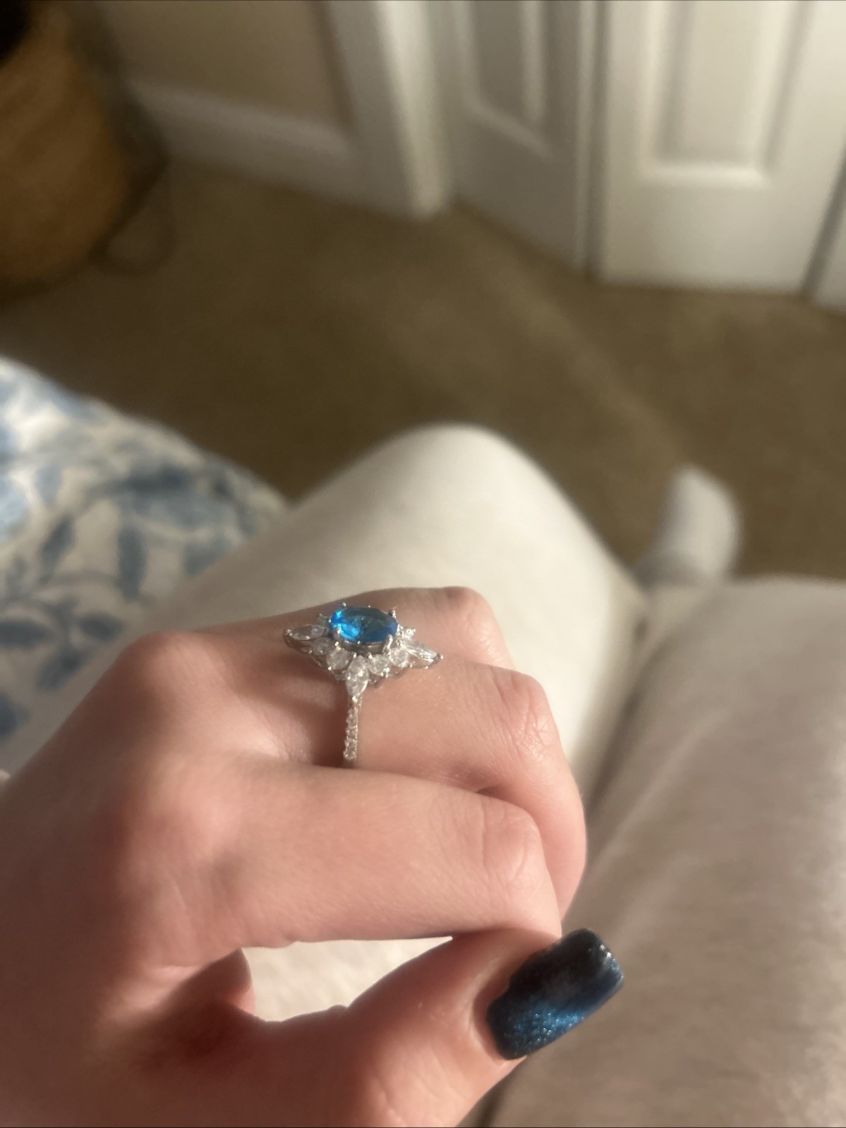 как выглядит 925 Sterling Silver Blue Stone Halo Ring  CZ Style Size 11 фото